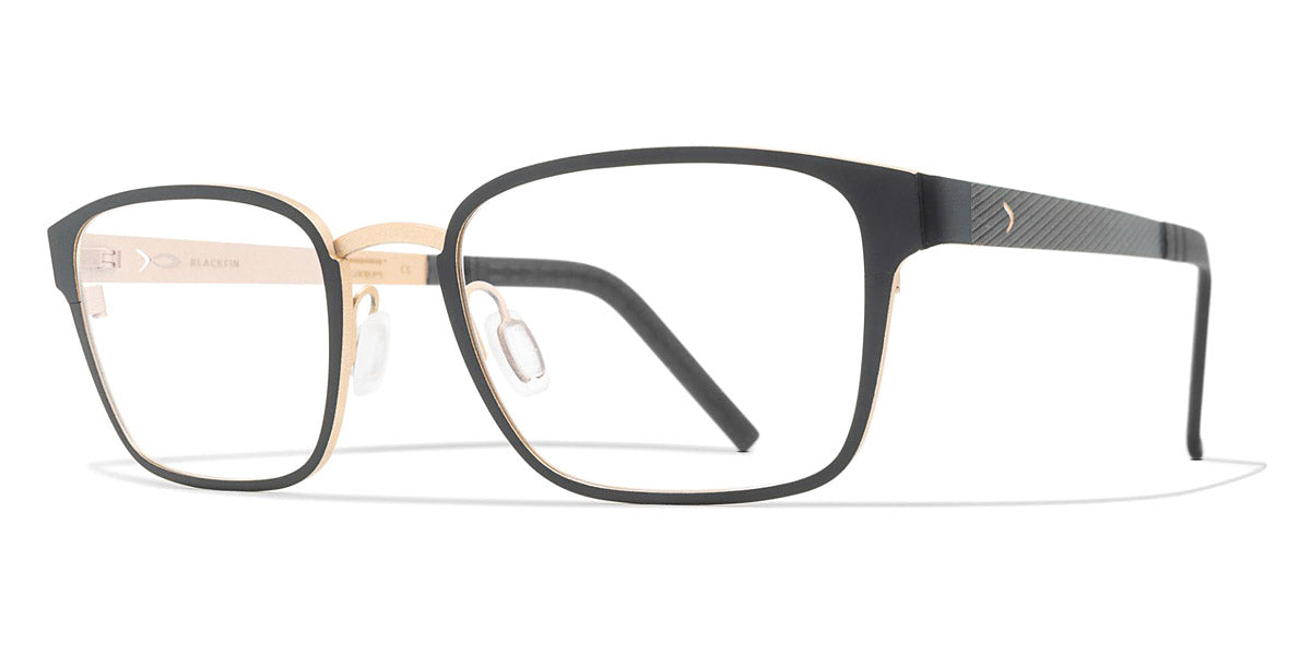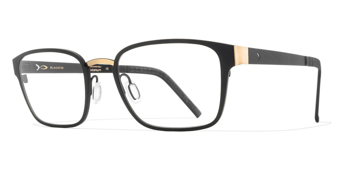 BRISTOL Eyeglasses by Blackfin. Color: Black/Black Gold, Black/Light Gold, Black/Gold, Brown/Blue, Size: 51-20-145. Take a look at Blackfin’s BRISTOL eyeglasses which combine timeless design with modern materials, resulting in a pair of frames that are both elegant and durable. Made from high-quality titanium, these glasses offer lightweight comfort for daily wear. The refined silhouette and subtle detailing enhance their sophisticated appeal. Perfect for any setting, BRISTOL eyeglasses seamlessly blend into any wardrobe.