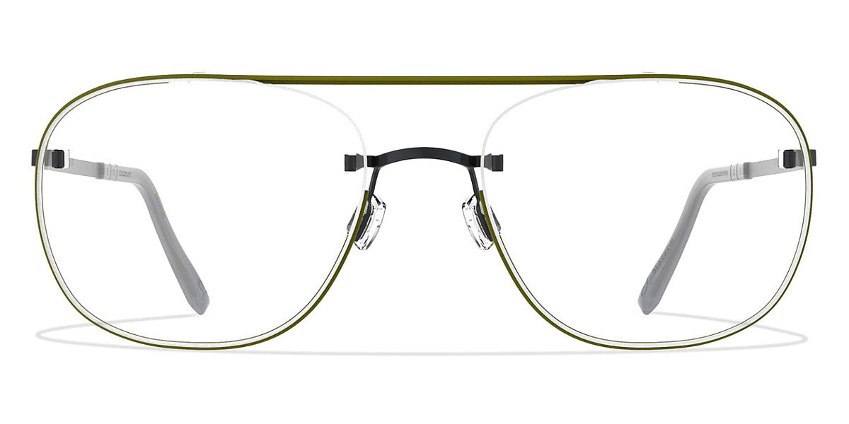FISHBOURNE Eyeglasses by Blackfin. Color: Silver/Black, Black/Green, Size: 58-20-140. Innovative design takes flight in the Blackfin FISHBOURNE aviators, where ethereal grace dances with cutting-edge craftsmanship. These gasses push the boundaries of what eyewear can be, with just a fraction of rim left out to create a windswept, almost weightless look. The result is a pair of glasses that feel as light as air, yet as durable as the highest-end titanium it's made of. Turn heads wherever you go and enjoy unrivalled quality with the FISHBOURNE.