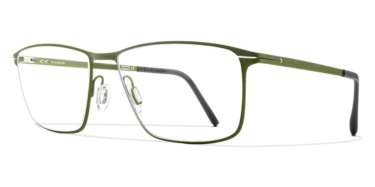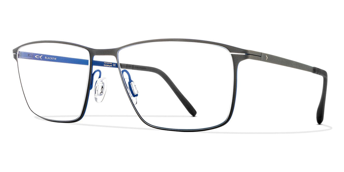 GARRISON Eyeglasses by Blackfin. Color: Midnight Blue, Gray/Blue, Amaranth Red, Army Green, Black/Silver, Size: 56-17-145. Gliding effortlessly between style and comfort, the Blackfin GARRISON reimagines a classic rectangle frame in terms of smoothness and lightness. The air design makes these glasses feel as if they’re barely there. Yet, the impact they make is anything but subtle, with clean lines and a modern silhouette that speaks to understated elegance. The GARRISON eyeglasses are perfect for those who prefer their style to be as effortless as it is impactful.