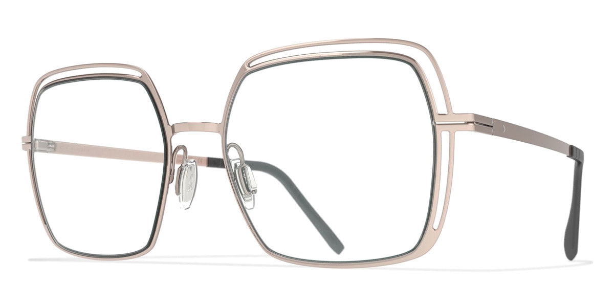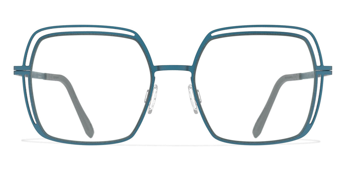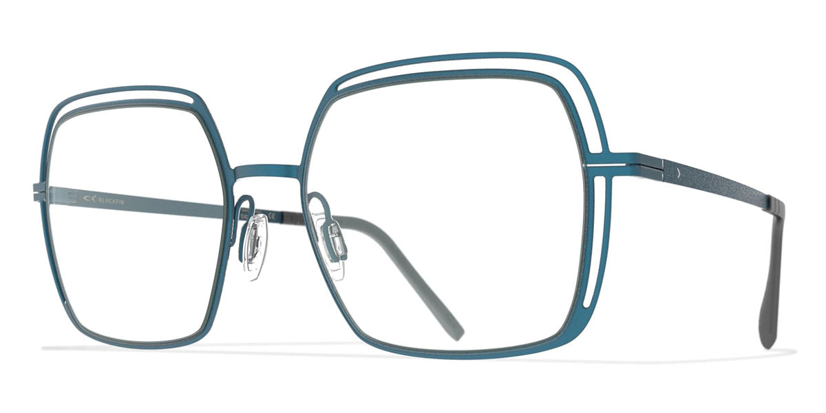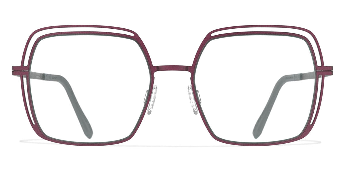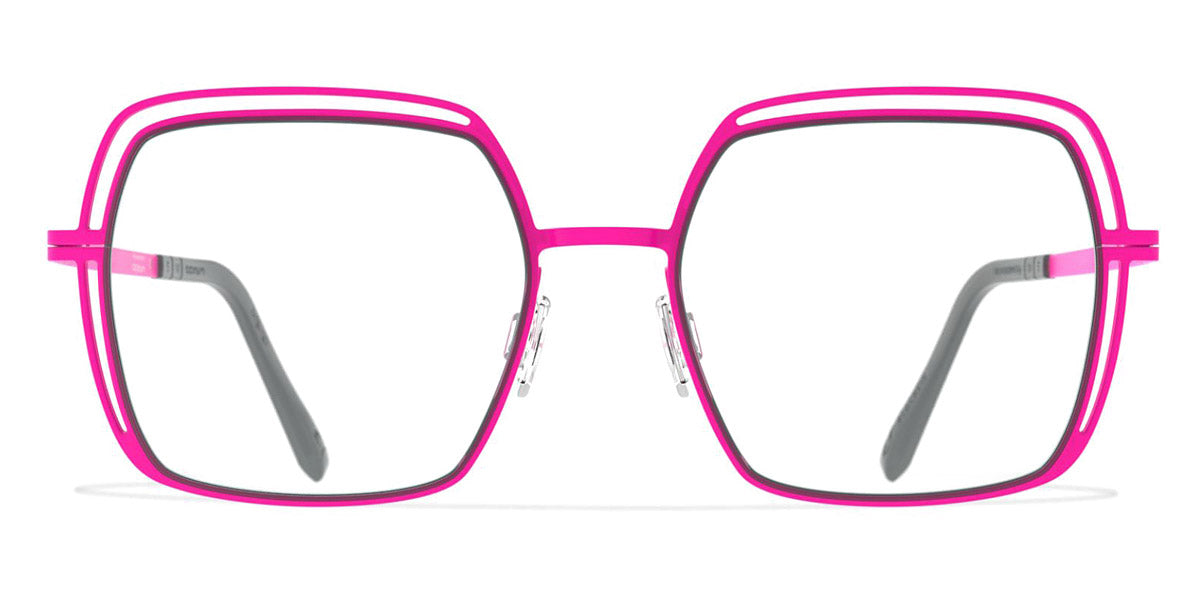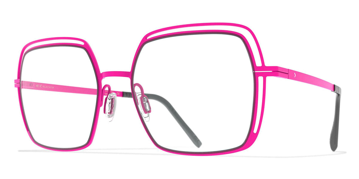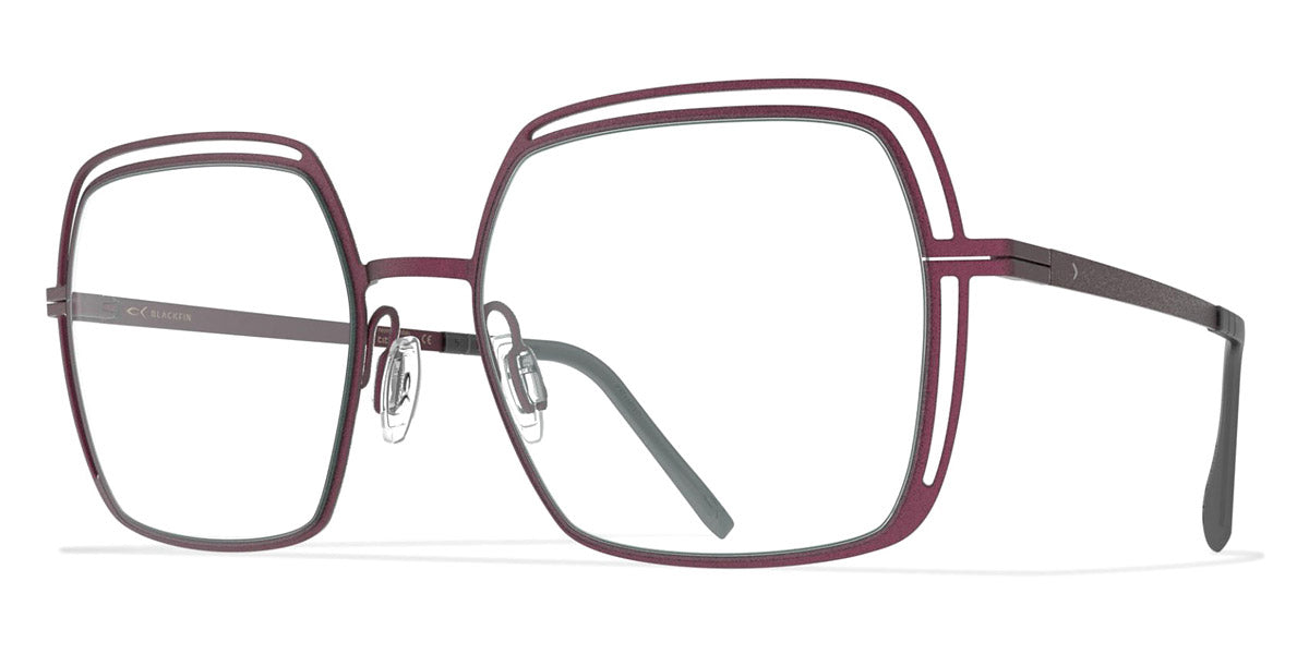 GOOSE BAY Eyeglasses by Blackfin. Color: Matte Fluo Fuchsia, Damascus Burgundy, Amber Gold, Blackfin Black, Ultramarine Green, Size: 53-20-145. With a futuristic edge, the Blackfin GOOSE BAY eyeglasses feature an angular, geometric design that’s both daring and refined. The distinctive, almost sculptural form combined with double rings and unexpected colorways offers a unique aesthetic that’s impossible to ignore. Cut from a single sheet of titanium, these frames are engineered for longevity and style. Discover the unique appeal of the GOOSE BAY model and level up your eyewear game with Blackfin.