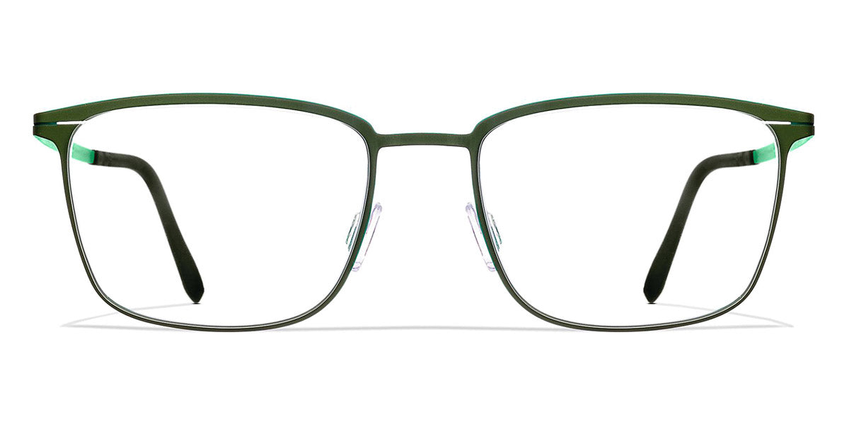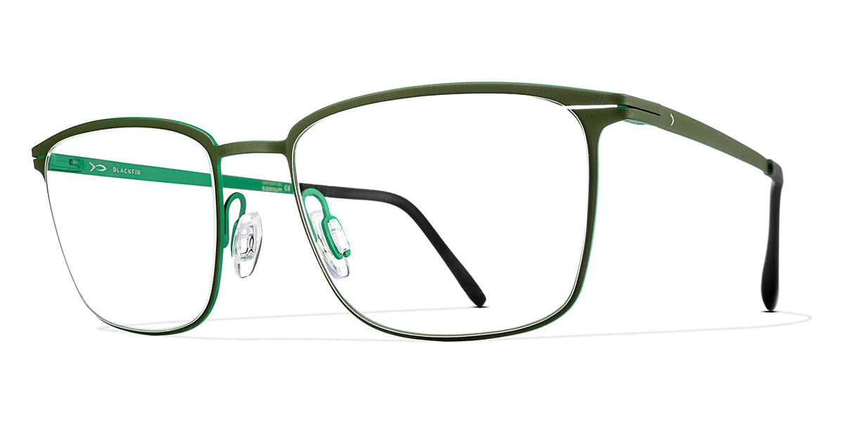GREENPORT Eyeglasses by Blackfin. Color: Gunmetal, Blue/Black, Army Green/Viridian Green, Blue/Silver, Red/Silver, Size: 53-18-145. Sophisticated yet bold, the Blackfin GREENPORT eyeglasses boast a rounded-off rectangle shape that challenges traditional design norms. The blend of vibrant colors and minimalist lines makes this model a statement piece for those who dare to stand out. Made from premium titanium, they are ultralight and flexible, ensuring a perfect fit. With the GREENPORT, you experience of wearing glasses will never be the same.