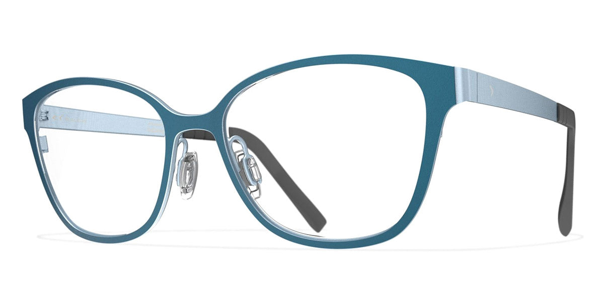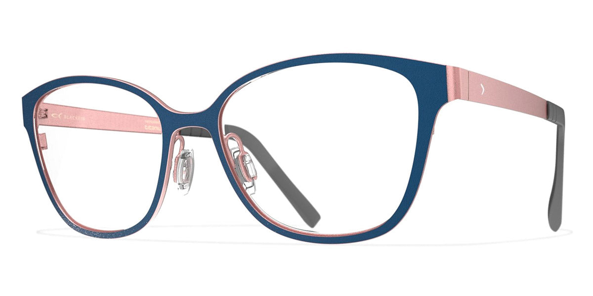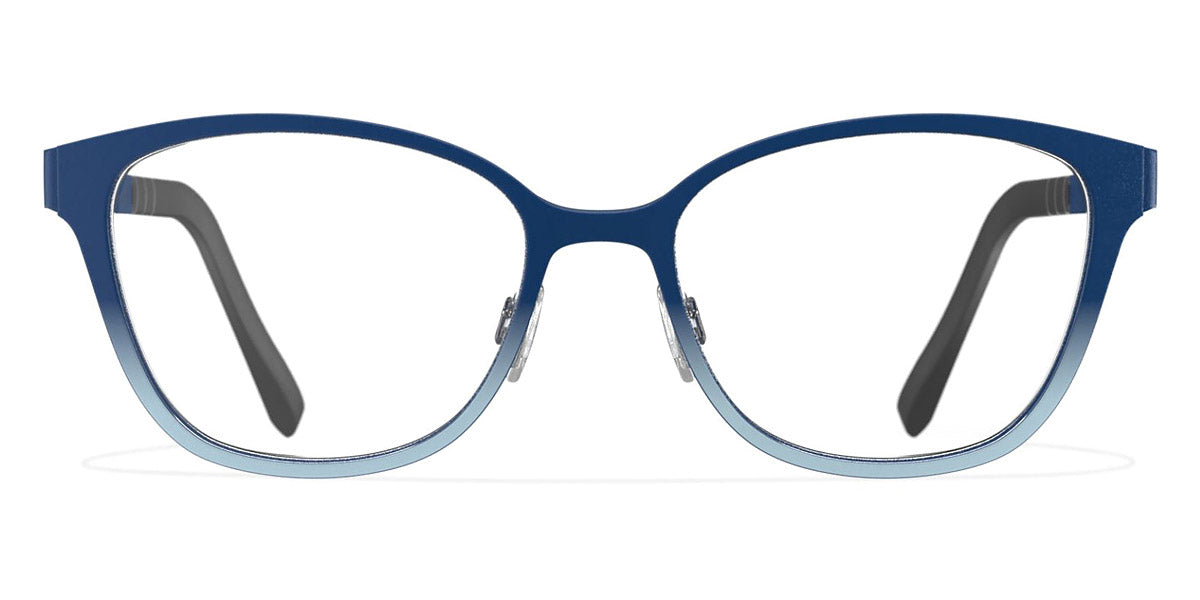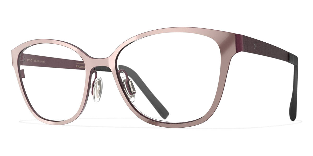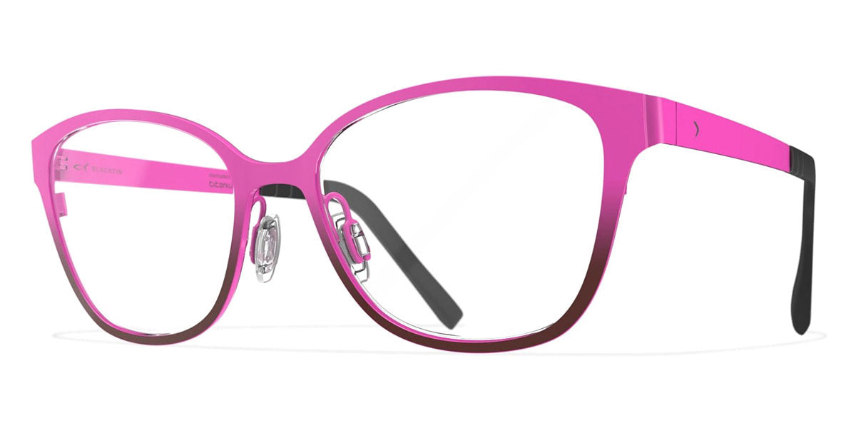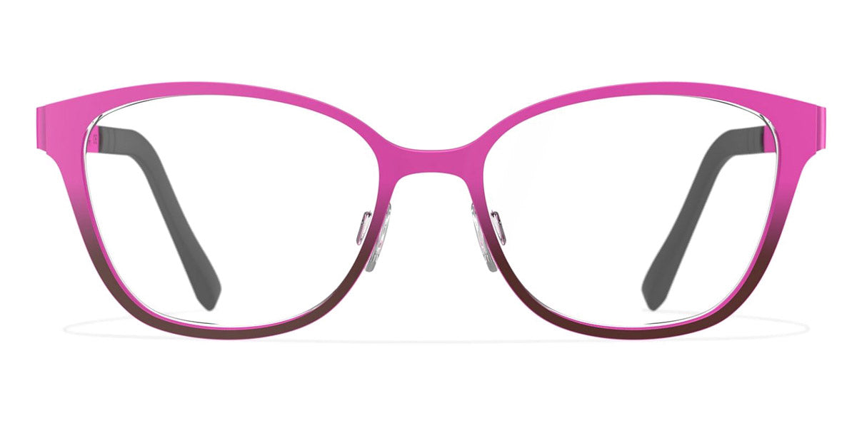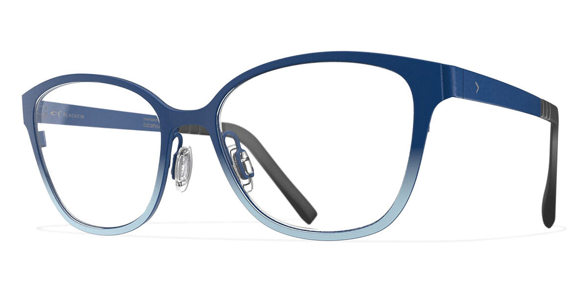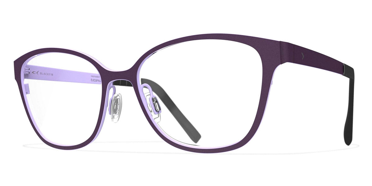 HAYDEN Eyeglasses by Blackfin. Color: Blue/Pink, Green/Light Blue, Purple/Lavender, Amber Gold/Purple, Magenta-Brown Gradient/Magenta, Blue-Light Blue Gradient/Blue, Size: 53-17-145. Distinctively modern, the Blackfin HAYDEN eyeglasses push the envelope with their geometric precision and refreshing palette. These frames stand out with their sharply defined contours, yet they retain a smoothness that’s pleasing to the eye. Tough and weightless at the same time, they embody the essence of resilience and style. Whether paired with casual or formal attire, these glasses elevate the entire look with an air of understated cool.