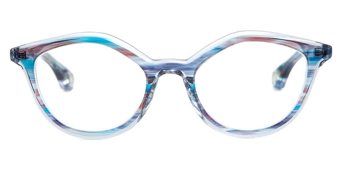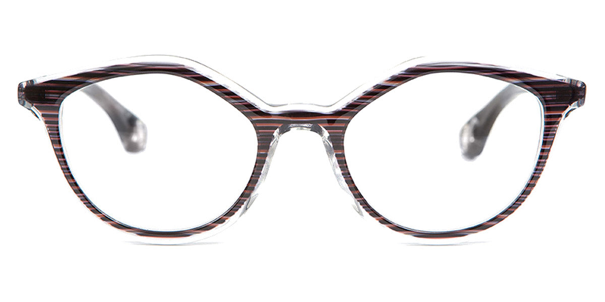 CONKLIN Eyeglasses by Blake Kuwahara. Color: Brook, Hunter, Rosewood, Sable, Size: 50-20-140. The CONKLIN eyeglasses redefine the cat-eye silhouette with a twist that’s both striking and captivating. This model boasts an irregular round shape that elegantly sweeps upward, adding a sprinkle of vintage glamor with a modern edge. The acetate frame is nothing short of mesmerizing, with colors that seem to dance and shift as they catch the light. Whether you’re dressing up for an evening out or just looking to elevate your everyday attire, the CONKLIN is the perfect blend of grace and boldness.