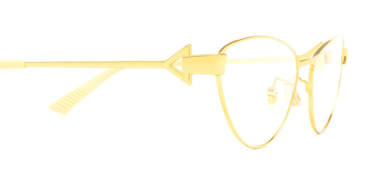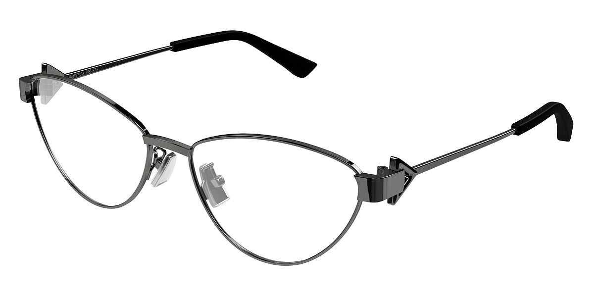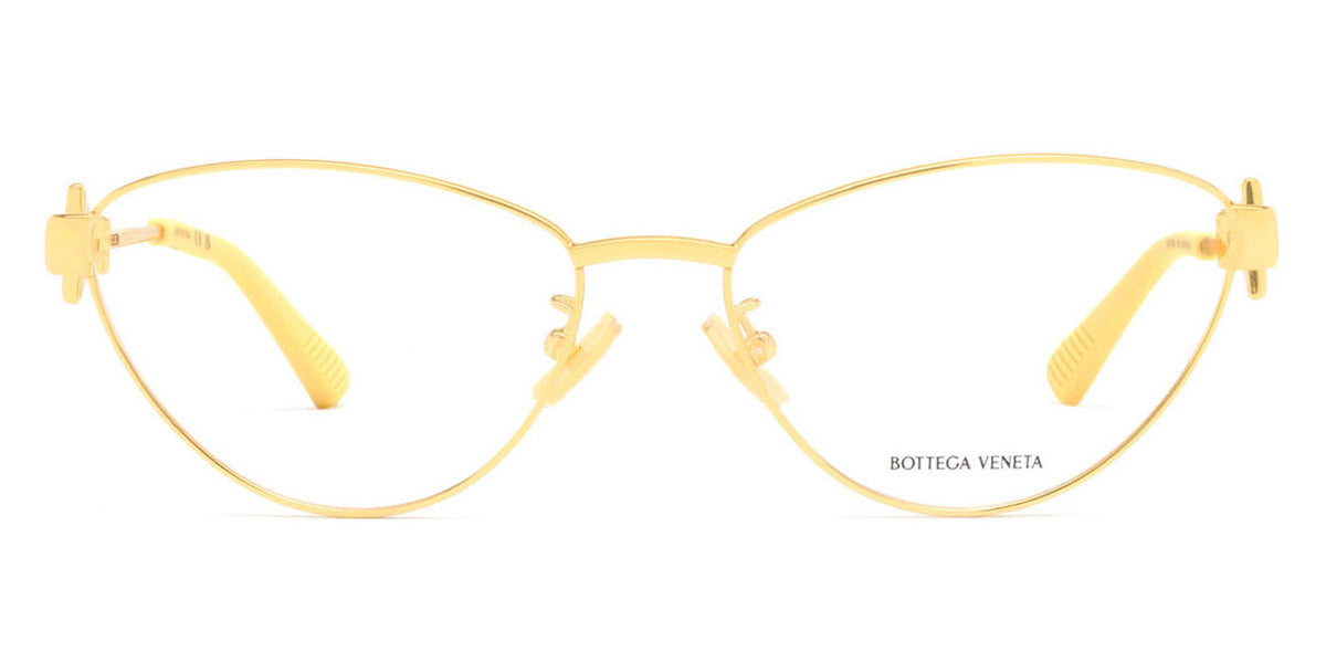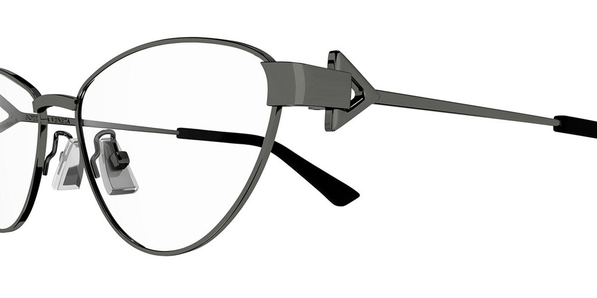 BV1188O Eyeglasses by Bottega Veneta. Material: Metal, Shape: Cat-Eye, Color: Gold, Gunmetal/Transparent, Size: 56-16-140. The BV1188O eyeglasses are designed for the discerning individual who values both style and quality. These eyeglasses embody the essence of luxury, combining practicality with sophisticated design elements that resonate with fashion enthusiasts. As a versatile accessory, they complement various looks, from professional attire to casual outfits, enhancing the overall aesthetic. Bottega Veneta's emphasis on craftsmanship ensures that these eyeglasses not only meet the needs of the wearer but also serve as a reflection of their personal taste and lifestyle. Wearing them signifies an appreciation for timeless design and the art of fine eyewear.