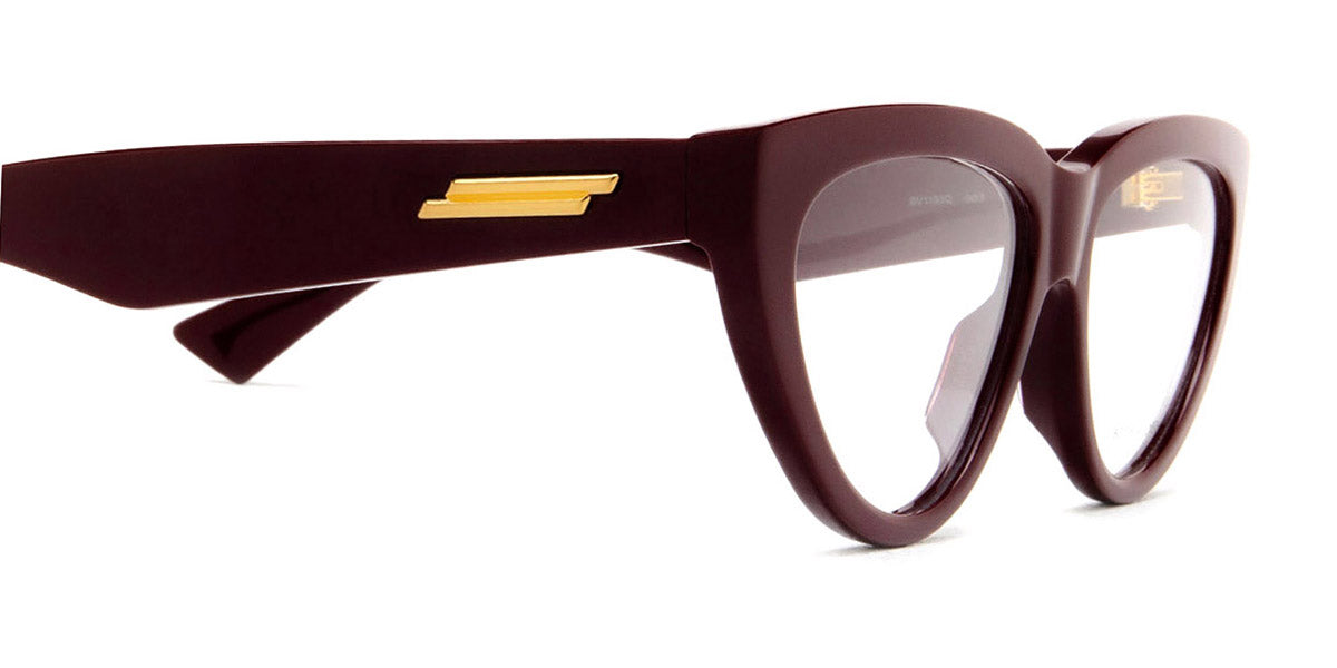 BV1193O Eyeglasses by Bottega Veneta. Material: Acetate, Shape: Cat-Eye, Color: Black, Havana, Burgundy, Size: 54-15-145. Exploring new dimensions of elegance, the BV1193O eyeglasses from Bottega Veneta capture attention effortlessly. Their refined design makes them a perfect accessory for those who appreciate understated luxury. These eyeglasses are crafted for individuals who desire both comfort and sophistication, reflecting a lifestyle that values both aesthetics and functionality. Their ability to blend seamlessly with various styles speaks to Bottega Veneta's dedication to timelessness and classic appeal, making them a cherished addition to any eyewear collection.