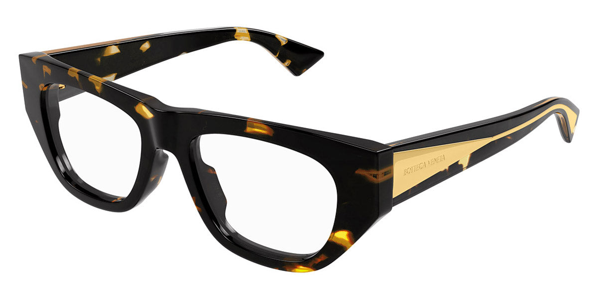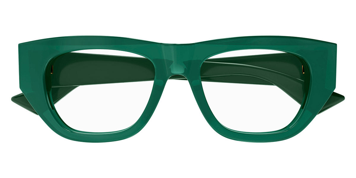 BV1279O Eyeglasses by Bottega Veneta. Material: Acetate, Shape: Rectangular, Color: Black, Havana, Green, Size: 51-18-145. The Bottega Veneta BV1279O eyeglasses exemplify the brand's commitment to understated elegance and timeless style. Designed for individuals who appreciate the subtlety of sophistication, these eyeglasses serve as a versatile accessory suitable for various occasions. The craftsmanship is evident in every detail, reflecting a dedication to quality that Bottega Veneta is renowned for. Each pair is carefully constructed to provide both comfort and functionality, making them an ideal choice for daily wear. Whether navigating a busy workday or enjoying a leisurely outing, these eyeglasses elevate any ensemble, seamlessly blending fashion with practicality.