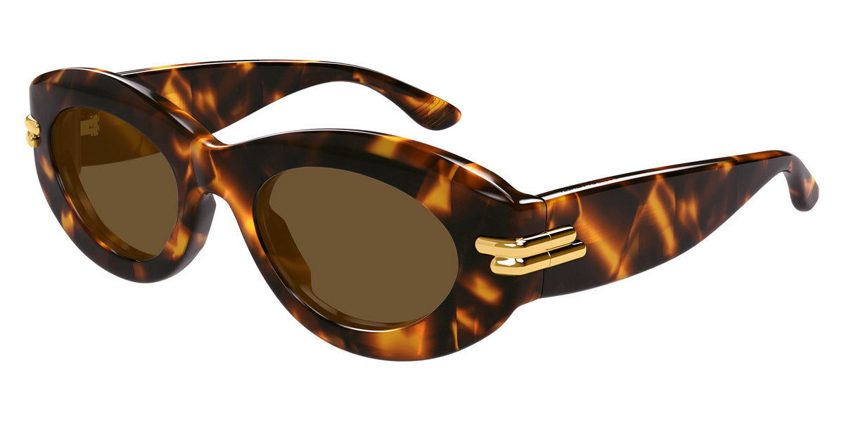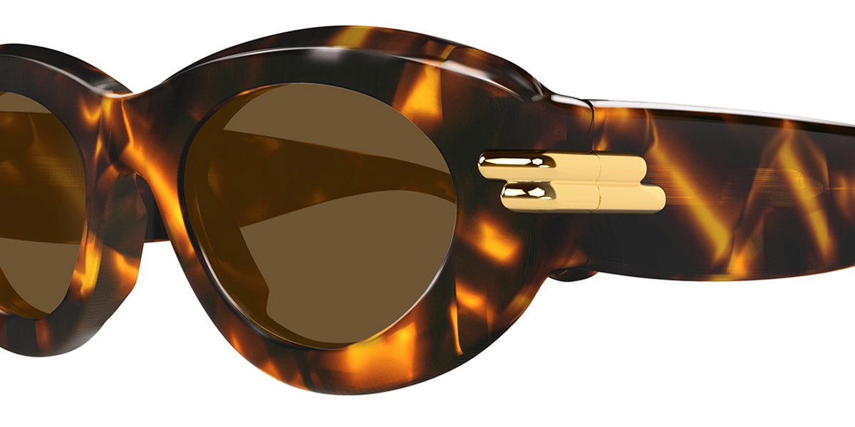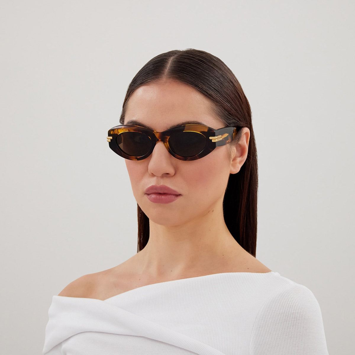 BV1322S Sunglasses by Bottega Veneta. Material: Acetate, Shape: Oval, Color: Black/Grey, Havana/Brown, Green/Green, Size: 51-21-140.