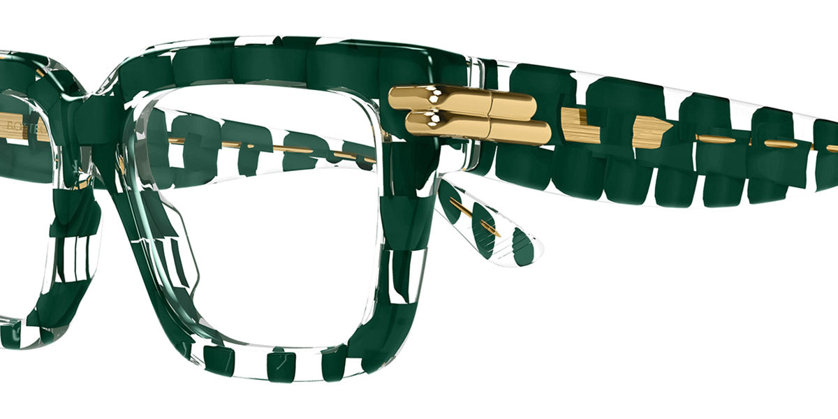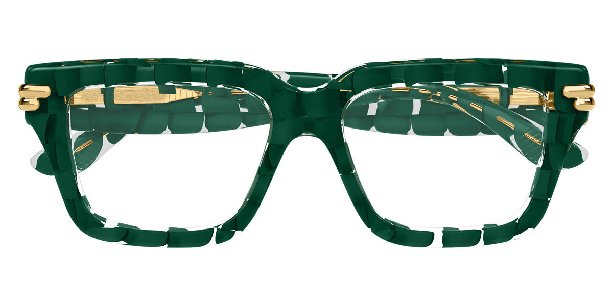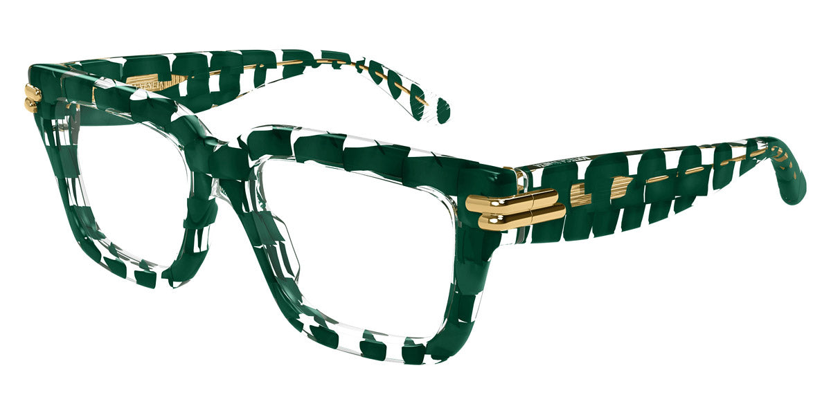 BV1324O Eyeglasses by Bottega Veneta. Material: Acetate/Metal, Shape: Square, Color: Black/Black, Green/Green, Grey/Grey, Size: 53-17-140.
