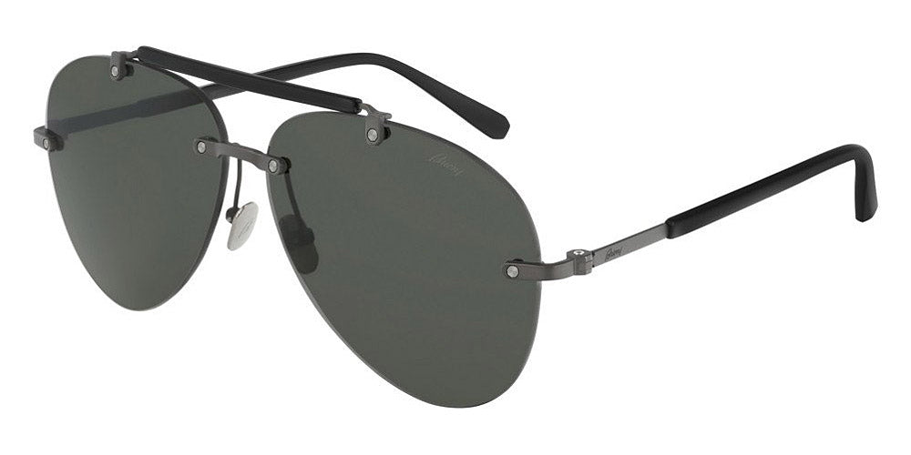 BR0061S Sunglasses by Brioni. Shape: Aviator, Material: Titanium, Color: Black/Gray / Gray, Havana/Green / Green, Size: 61-11-145. Brioni is an epitome of masterful Italian craftsmanship and modern masculinity. Elegant but bold sunglasses and optical frames ensure comfort, functionality, and ultimate quality – this is what makes Brioni Eyewear stand out from the rest. The eco-sustainable frames are handcrafted with Italian bio-acetate derived from wood fibers and cotton flowers. The mineral lenses are shaped through the most precious optical material: an ultra-thin glass of natural origin. Offered in iconic shapes, the spectacles are distinguished by visible simplicity that belies the sophistication of the techniques used to create them. Each frame features a refined architecture to ensure maximum comfort of wear.