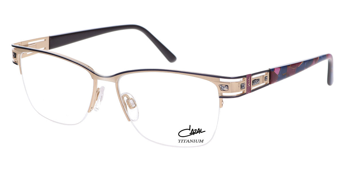 1262 Eyeglasses by Cazal. Color: 001 Black-Gold, 002 Bordeaux-Mint, 003 Gold-Black, 004 Night Blue-Rose, Size: 52-14-140. If you are someone who is looking to make a statement with their eyewear style, these opulent Cazal glasses are perfect for you! These iconic eyewear pieces offer an innovative design with an exuberant flair of creative energy and personality, allowing wearers to express themselves in any setting. With clean lines and sharp angles, refined details and harmonious color compositions, these frames provide maximum protection while still radiating a feeling of modern adventure and freedom — get ready to take on life with newfound confidence!