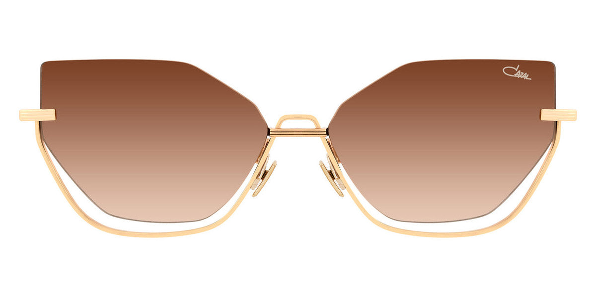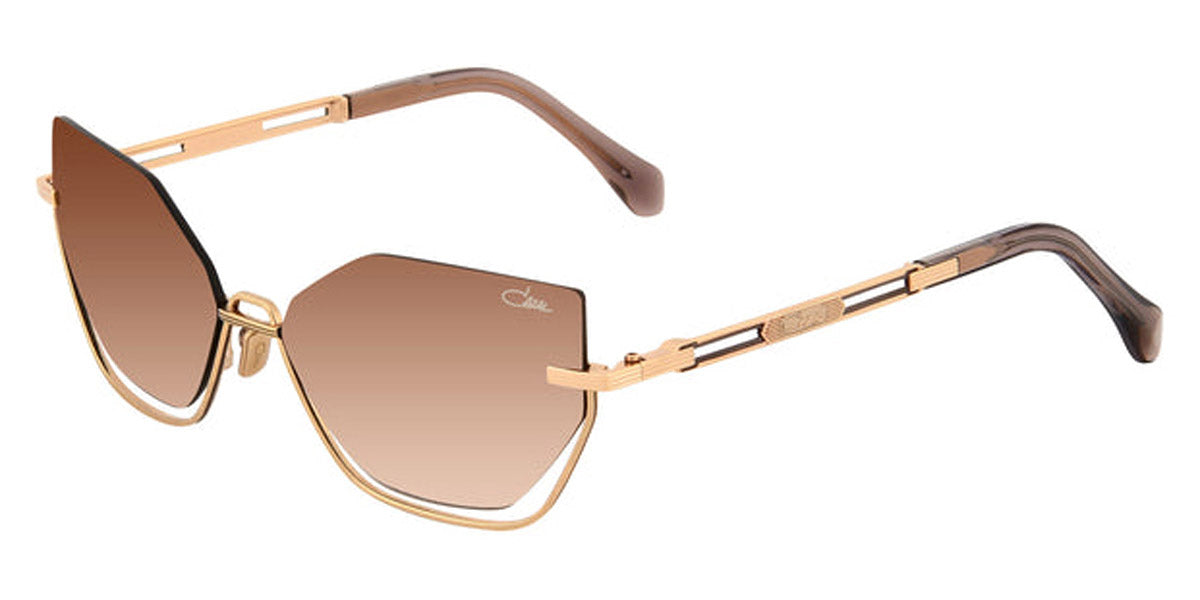 9505 Sunglasses by Cazal. Color: 001 Gold, 002 Rosegold, 003 Gold,Size: 58-15-135. If you are someone who is looking to make a statement with their eyewear style, these opulent Cazal glasses are perfect for you! These iconic eyewear pieces offer an innovative design with an exuberant flair of creative energy and personality, allowing wearers to express themselves in any setting. With clean lines and sharp angles, refined details and harmonious color compositions, these frames provide maximum protection while still radiating a feeling of modern adventure and freedom — get ready to take on life with newfound confidence!