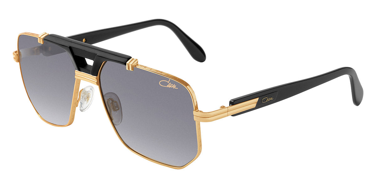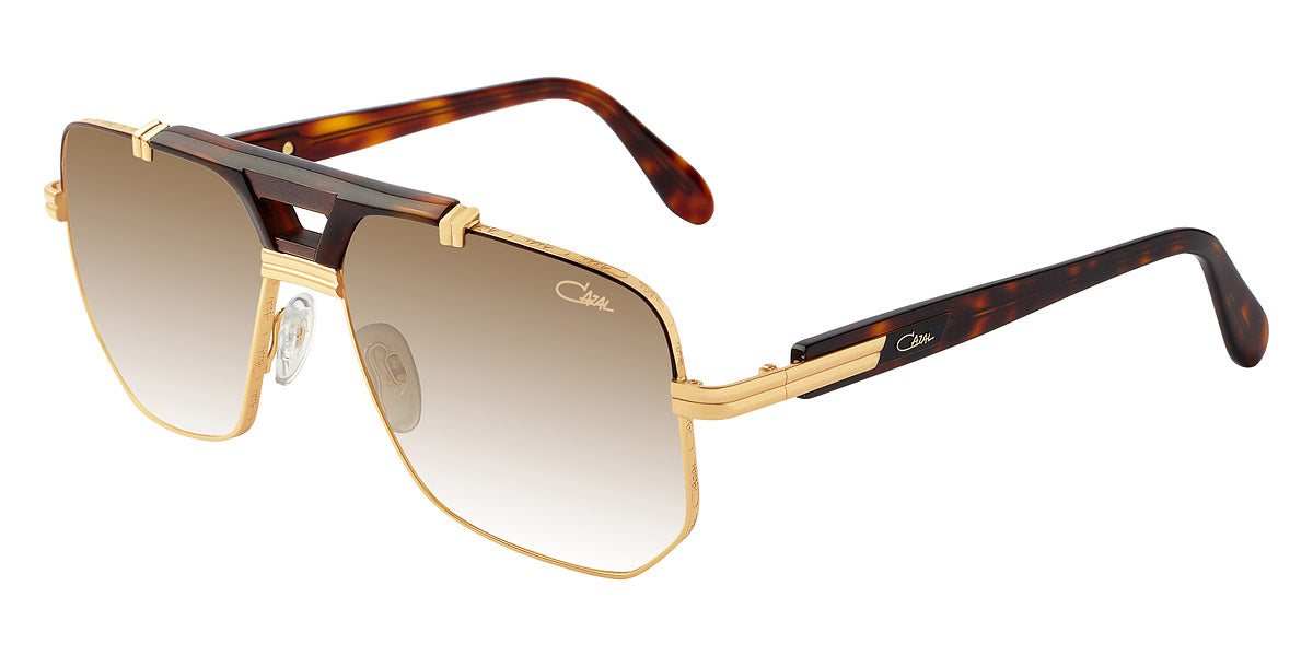 990 Sunglasses by Cazal. Color: 001 Gold, 003 Brown-Gold, Size: 59-15-140. If you are someone who is looking to make a statement with their eyewear style, these opulent Cazal glasses are perfect for you! These iconic eyewear pieces offer an innovative design with an exuberant flair of creative energy and personality, allowing wearers to express themselves in any setting. With clean lines and sharp angles, refined details and harmonious color compositions, these frames provide maximum protection while still radiating a feeling of modern adventure and freedom — get ready to take on life with newfound confidence!
