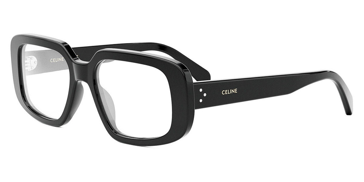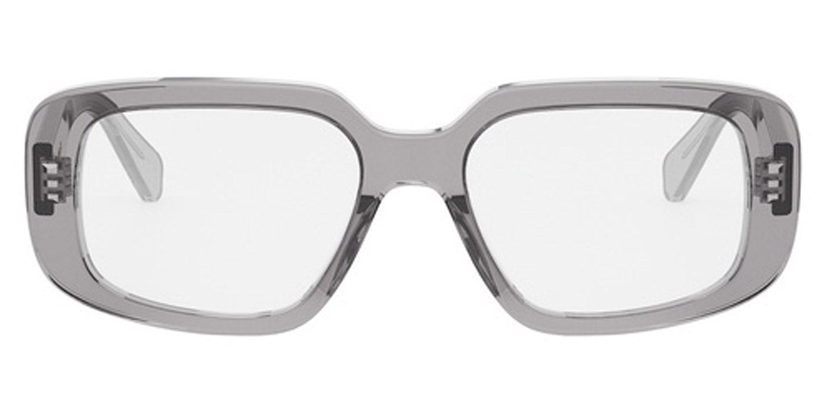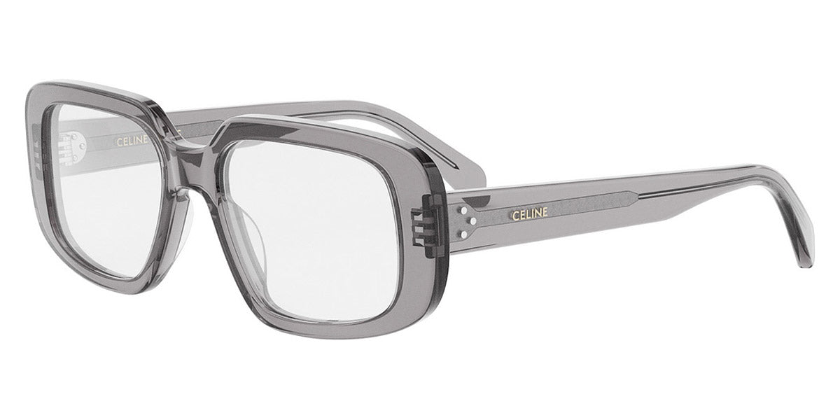 CL50143I Eyeglasses by Celine. Color: 001 Shiny Black, 020 Trasparent Grey, 052 Shiny Dark Havana, Size: 54-18-145. Discover the modern sophistication of the CL50143I eyeglasses by Celine. These frames are characterized by their sleek, streamlined design and impeccable craftsmanship. Made from durable acetate, they provide a comfortable fit and a stylish look that is perfect for any occasion.