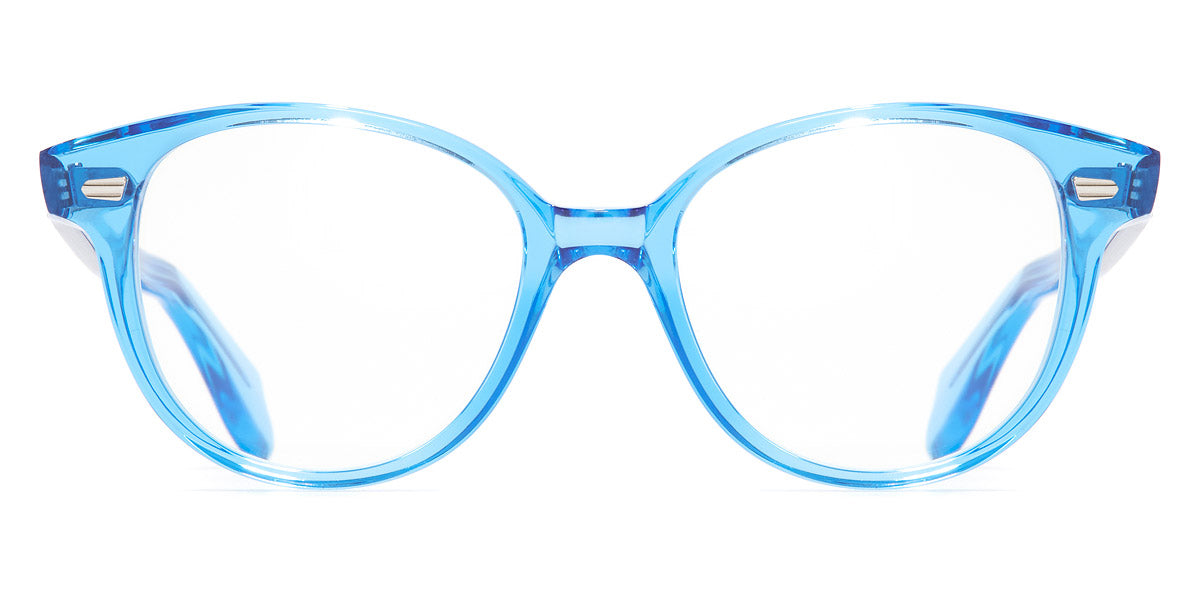 Cutler and Gross® CGOP140051ICS. Color: Blue Crystal Colour Studio, Size:51-145. The workmanship, attention to detail and consistency of the Cutler and Gross design language is special. You can choose from an array of classic styles mixed with more fashion-forward silhouettes. The frames are striking yet sophisticated, sculptural in design and stunning in quality. Most Cutler and Gross glasses are crafted from the finest-grade Italian acetate. The manufacturer utilizes 9mm and 10mm acetates and special lamination techniques, which make these frames unique and ultra-modern. Also, they boast an amazing selection of custom colors and transparent acetates revealing the hardware of the frames. The spectacles feature sculpted frontals and robust temples for a perfectly balanced fit. Each and every Cutler and Gross frame fits like a bespoke suit or tailored dress.