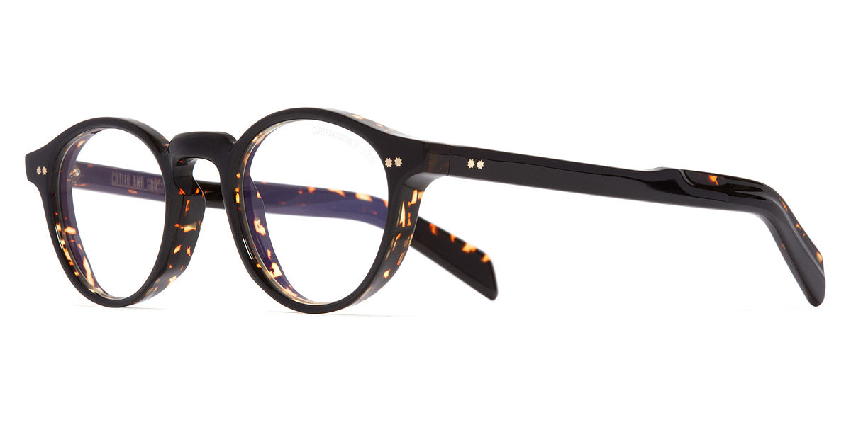 Cutler and Gross® CGOPGR0446. Color: Black On Havana, Dark Grey, Red Havana, Size: 46-22-145. The workmanship, attention to detail and consistency of the Cutler and Gross design language is special. You can choose from an array of classic styles mixed with more fashion-forward silhouettes. The frames are striking yet sophisticated, sculptural in design and stunning in quality. Most Cutler and Gross glasses are crafted from the finest-grade Italian acetate. The manufacturer utilizes 9mm and 10mm acetates and special lamination techniques, which make these frames unique and ultra-modern. Also, they boast an amazing selection of custom colors and transparent acetates revealing the hardware of the frames. The spectacles feature sculpted frontals and robust temples for a perfectly balanced fit. Each and every Cutler and Gross frame fits like a bespoke suit or tailored dress.