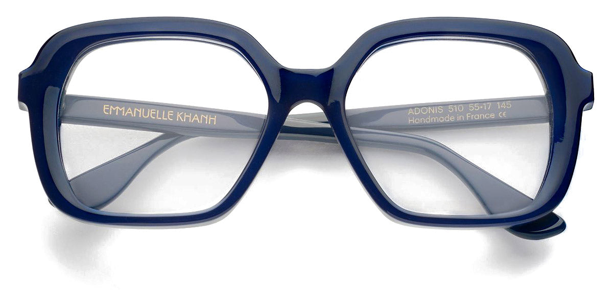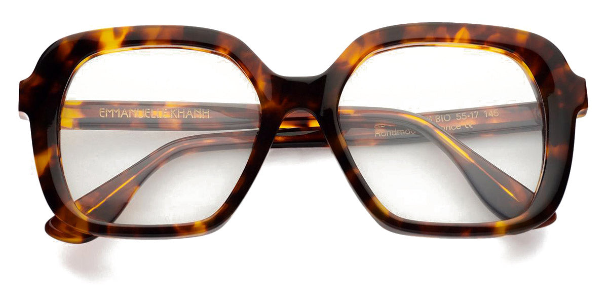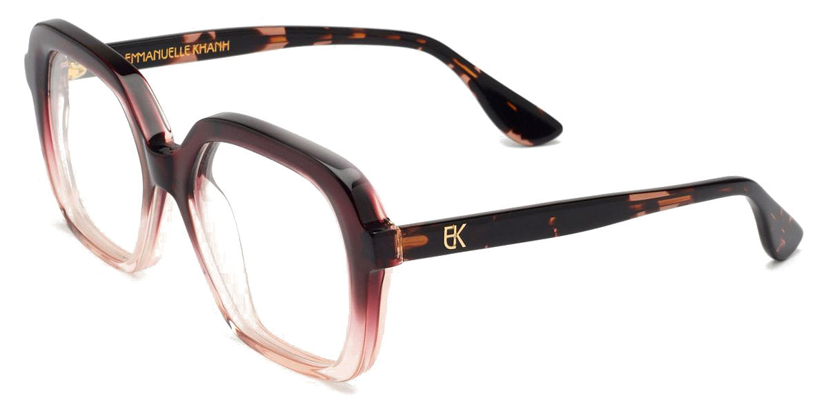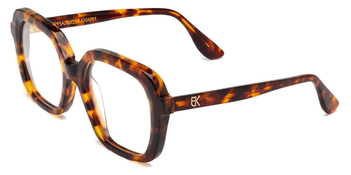 EK ADONIS Eyeglasses by Emmanuelle Khanh. Color: 006 - Bronze Tortoise, 247 - Egg Shell, 304 - Pink Tortoise, 510 - Marine Blue, 606 - Amethyst, Size: 55-17-145. If you’re looking for dazzling oversized frames with bold lines, the Emmanuelle Khanh glasses are just what you need. Taking inspiration from today's emancipated women and confident men, the brand creates distinctive frames with generous shapes and stunning embellishments. The materials are rich and dense, with exclusive colors developed by the House. The manually-carved and polished frames highlight the exceptional French savoir-faire to last a lifetime and remain timeless. Each pair of glasses features the iconic EK monogram, an elegant graphic motif that adds a touch of sophistication, glamor and opulence. In gold plated, it transforms the frame into a desirable jewel.