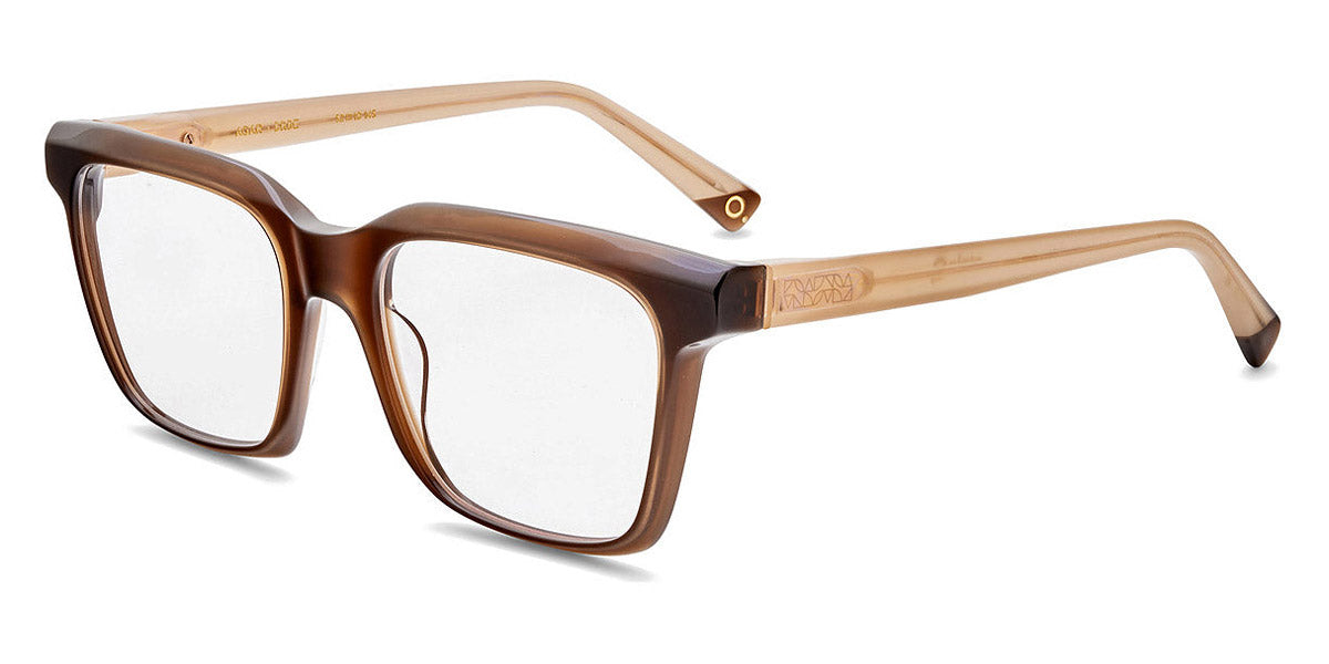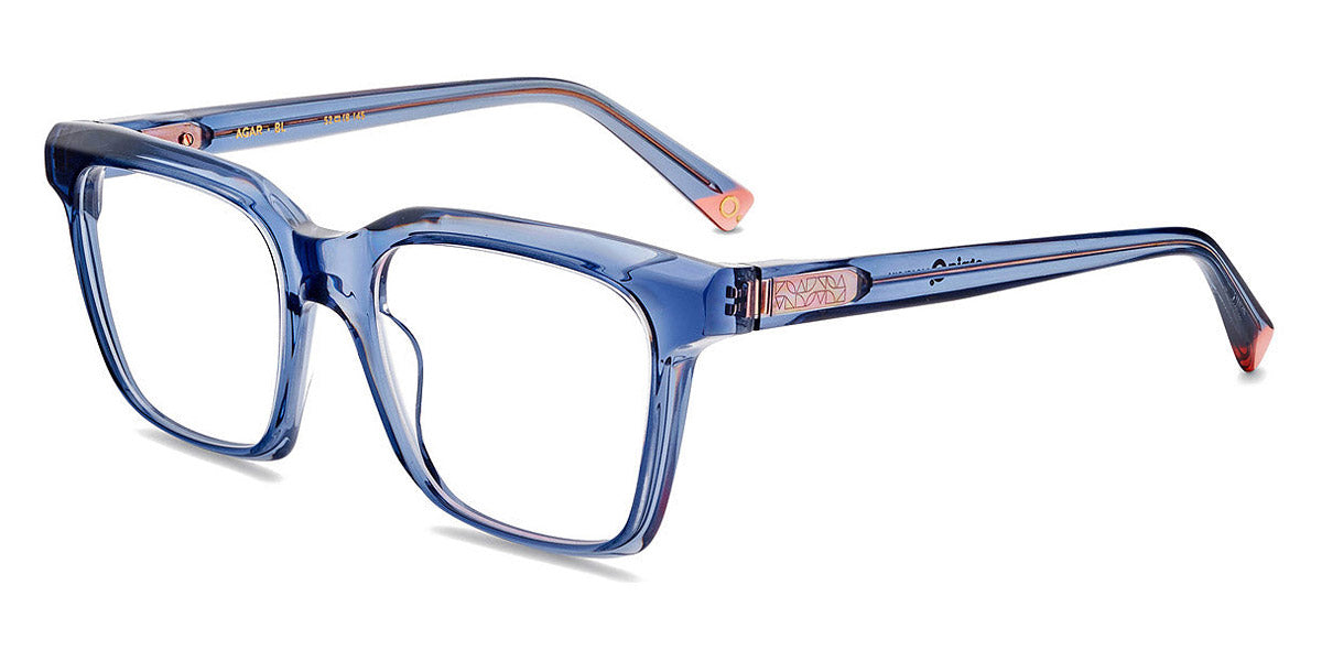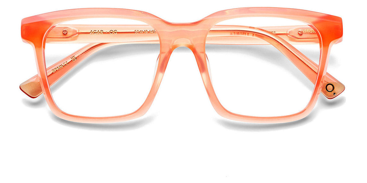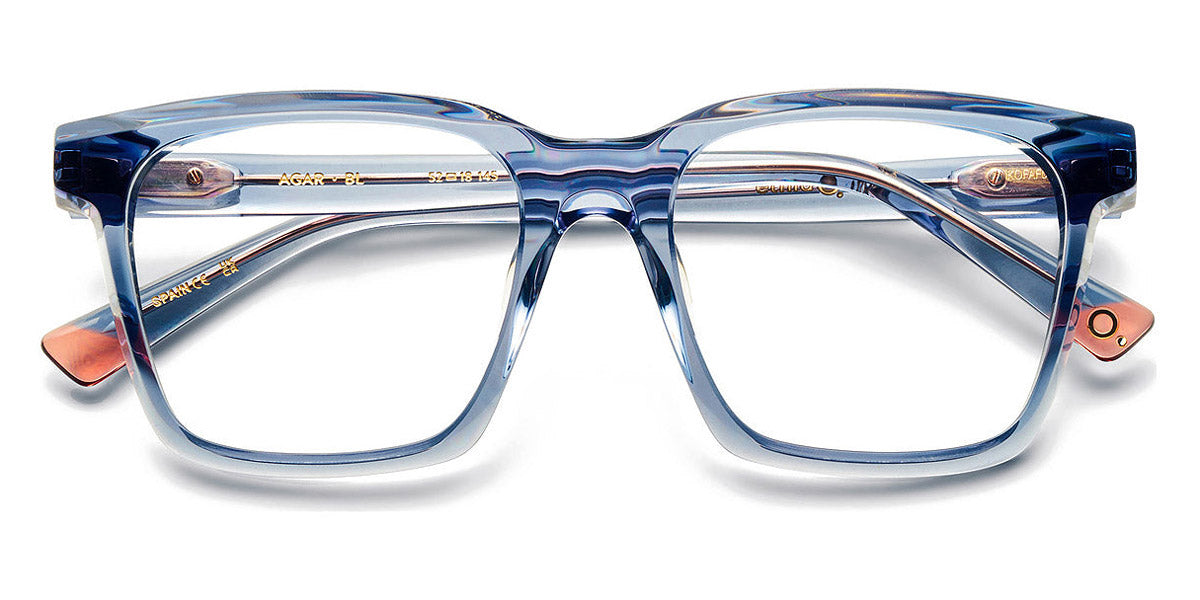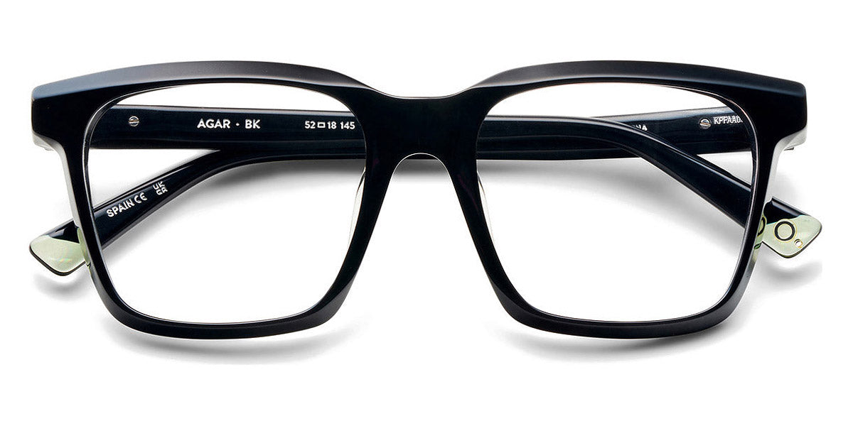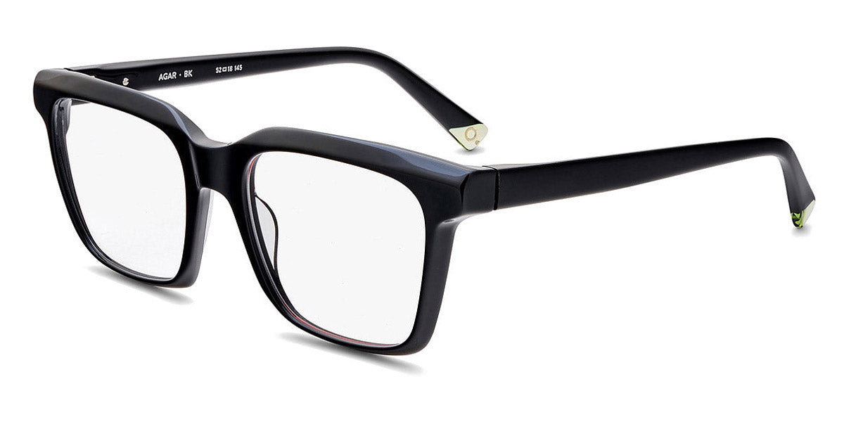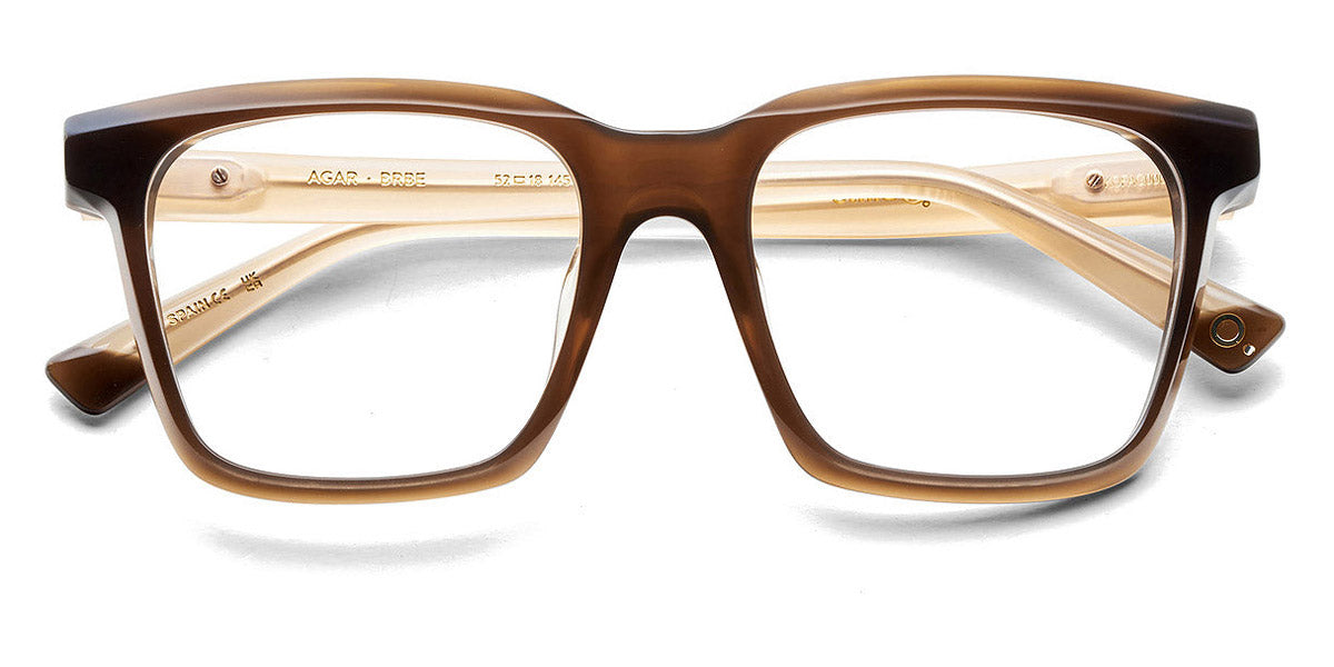 AGAR Eyeglasses by Etnia Barcelona. Color: BK Black, BL Blue, BRBE Brown/Brown, OG Orange, Size: 52-18-145. The AGAR glasses capture a sense of understated elegance with their clean lines and premium materials. The frame is both lightweight and durable, offering all-day comfort for those on the go. The color options range from subtle neutrals to bolder tones, giving you the flexibility to match your personal style. An exquisite balance of artistic minimalism and premium quality, the AGAR is ideal for those who appreciate class with a touch of character.