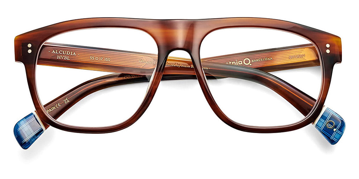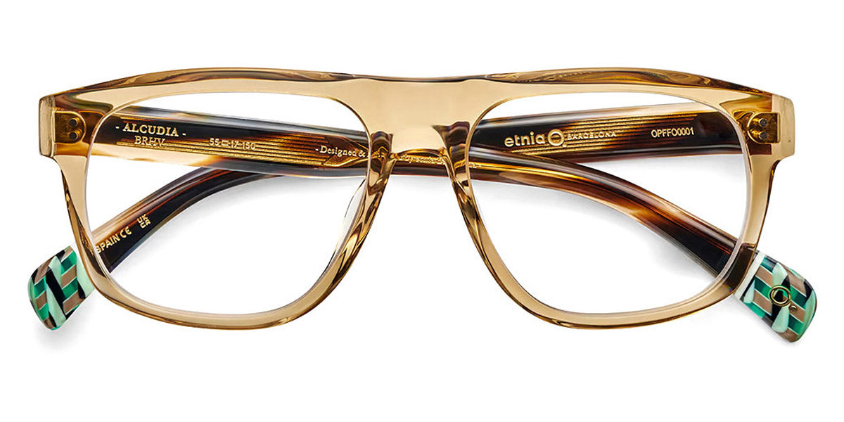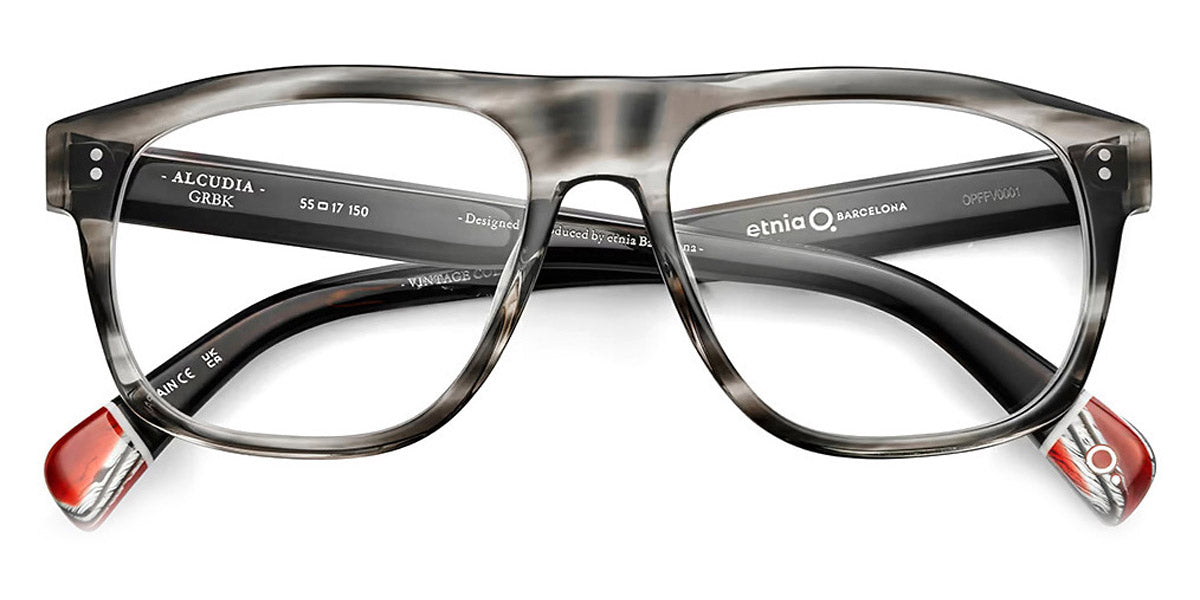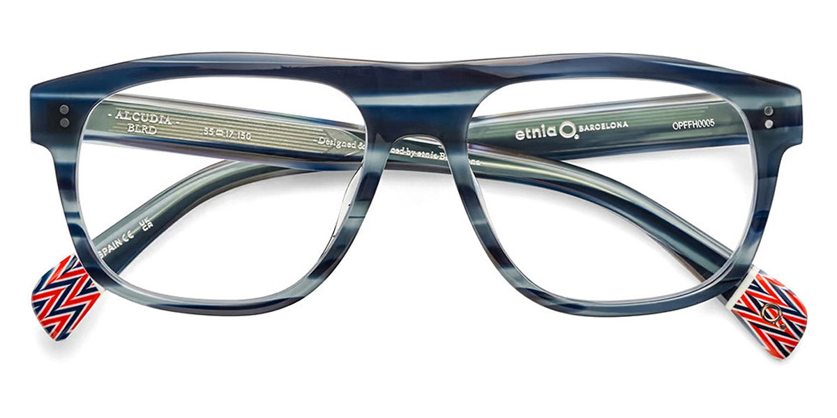 ALCUDIA Eyeglasses by Etnia Barcelona. Color: BLRD Blue/Red, BRHV Brown/Havana, GRBK Green/Black, HVBL Havana/Blue, Size: 55-17-150.