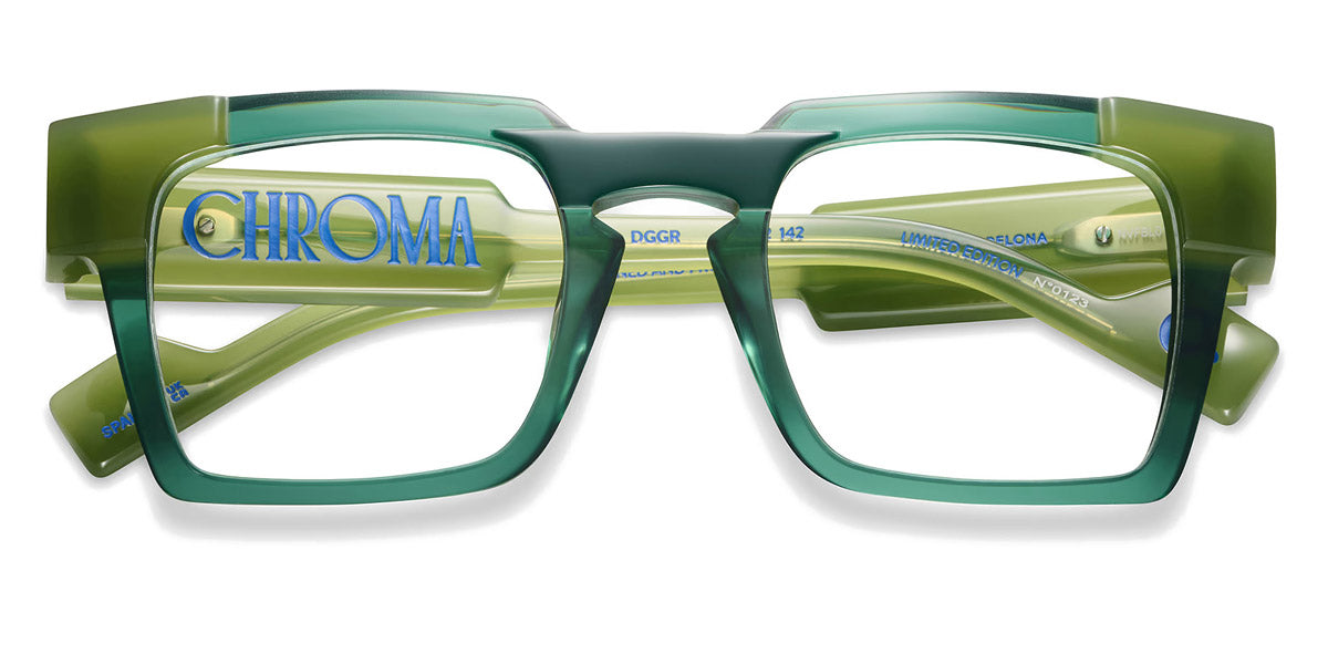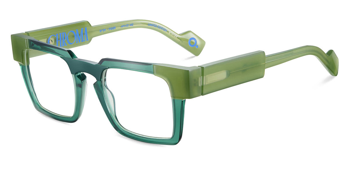 CHROMA N09 Eyeglasses by Etnia Barcelona. Color: BL Blue, DGGR Green/Green, HV Havana, RDHV Red/Havana, Size: 49-22-142. With a unique mix of bold geometry and striking colors, the CHROMA N09 eyeglasses are designed to stand out. The premium acetate frames come in vibrant hues like cobalt blue and emerald green, adding a pop of life to the structured shape. Their sturdy yet lightweight build ensures a secure and comfortable fit throughout the day. Perfect for those who appreciate bold, imaginative design, the CHROMA N09 will transform your style beyond recognition.