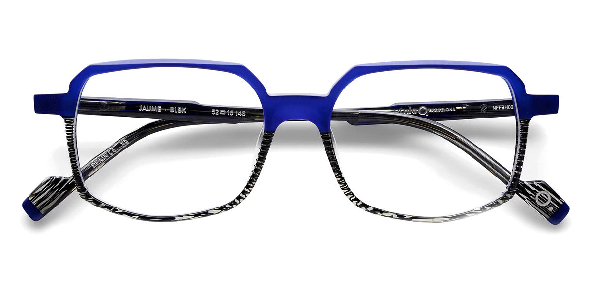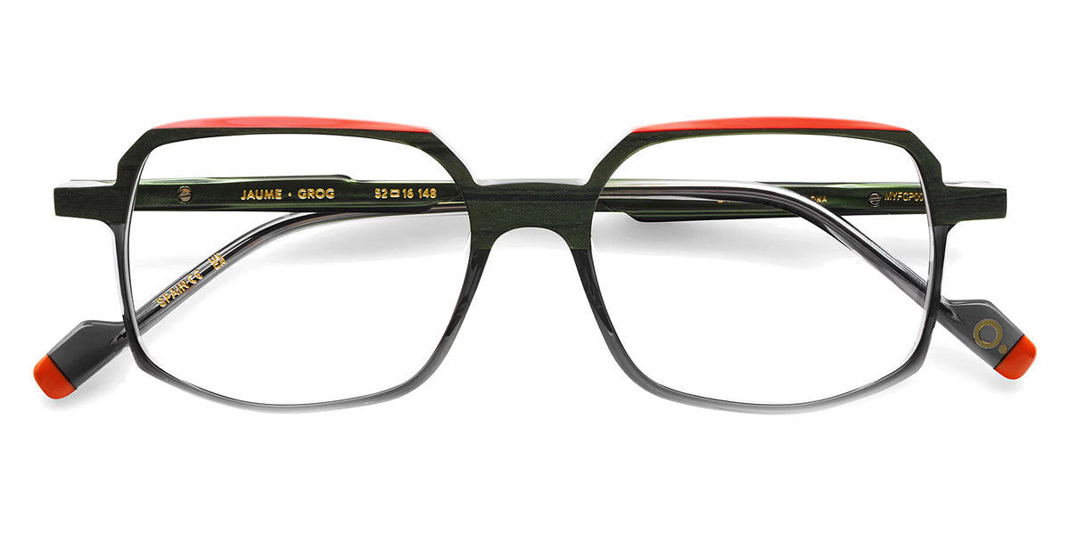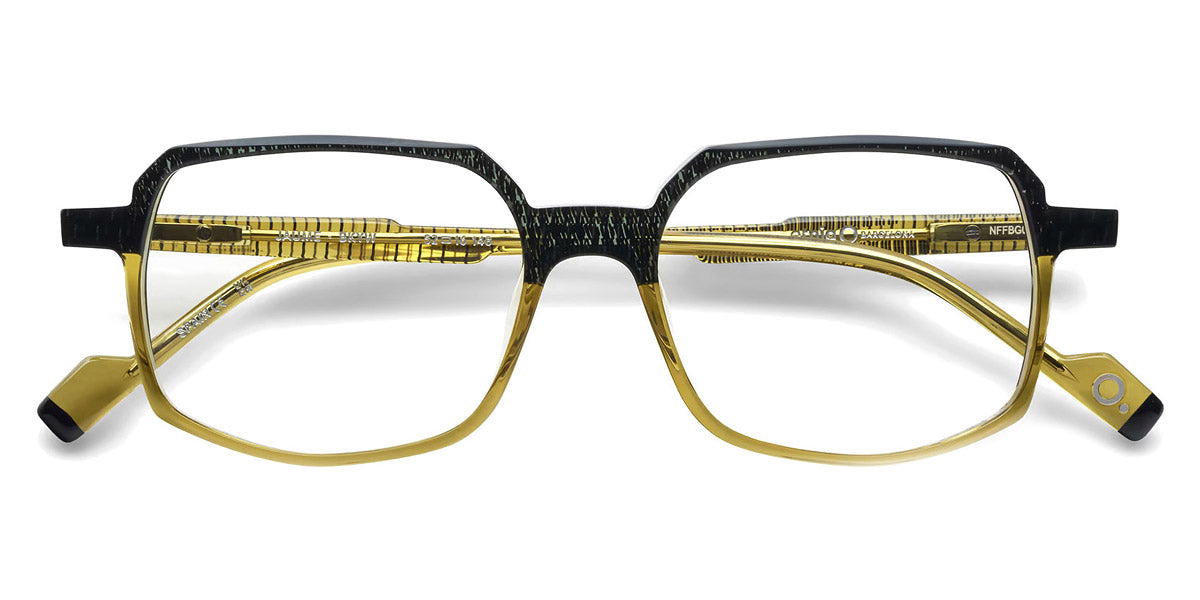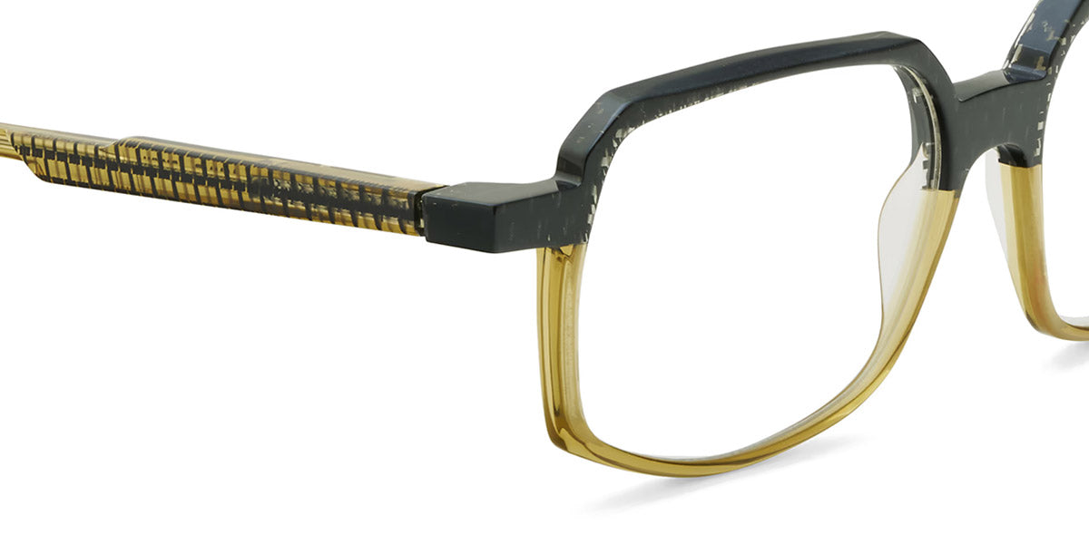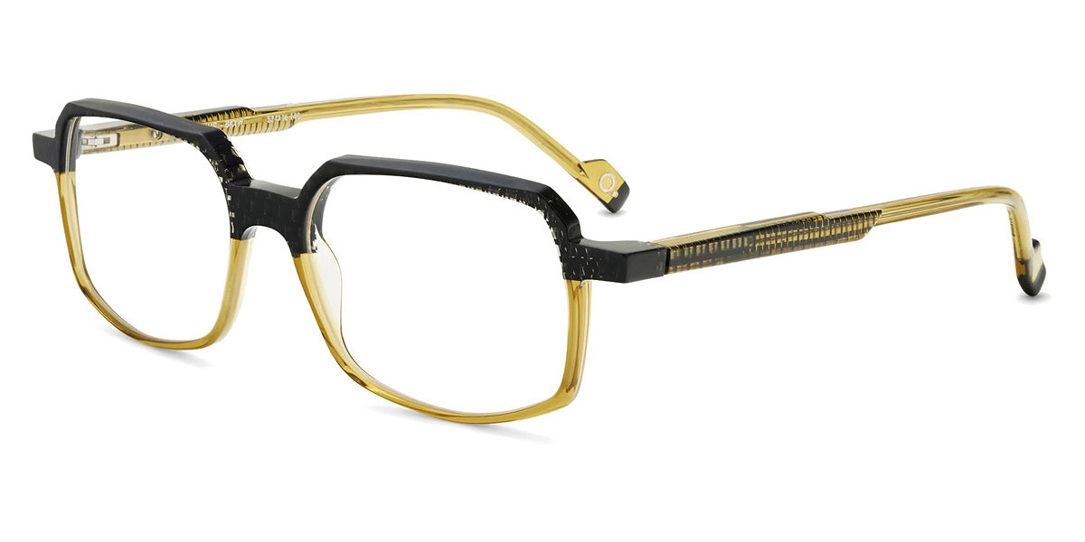 JAUME Eyeglasses by Etnia Barcelona. Color: BKYW Black/Yellow, BLBK Blue/Black, GROG Green/Orange, HVPT HV/PT, Size: 52-16-148. With a touch of asymmetry and refined detailing, the JAUME brings a fresh and daring twist to the classic square shape. Their slightly irregular geometry adds a little bit of visual intrigue, while the dual-color acetate creates a look that’s both subtle and striking. The meticulous craftsmanship shines through in the smooth edges and sculpted temples, while the whisper-light construction keeps these glasses wearable and comfortable all day. Lending a lightweight and lighthearted vibe to your everyday look with the JAUME.