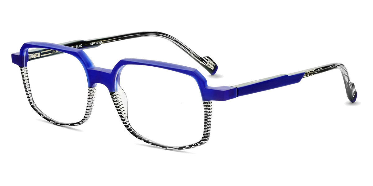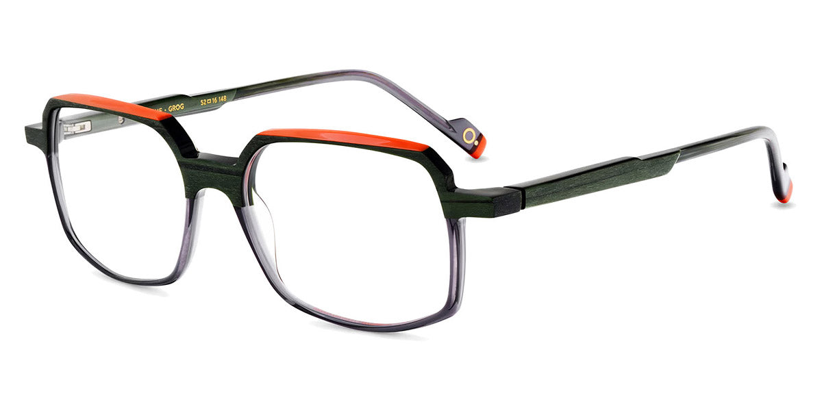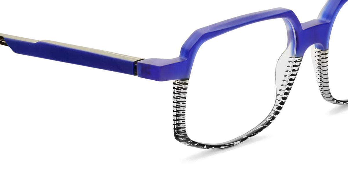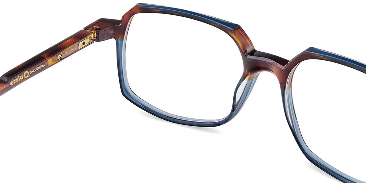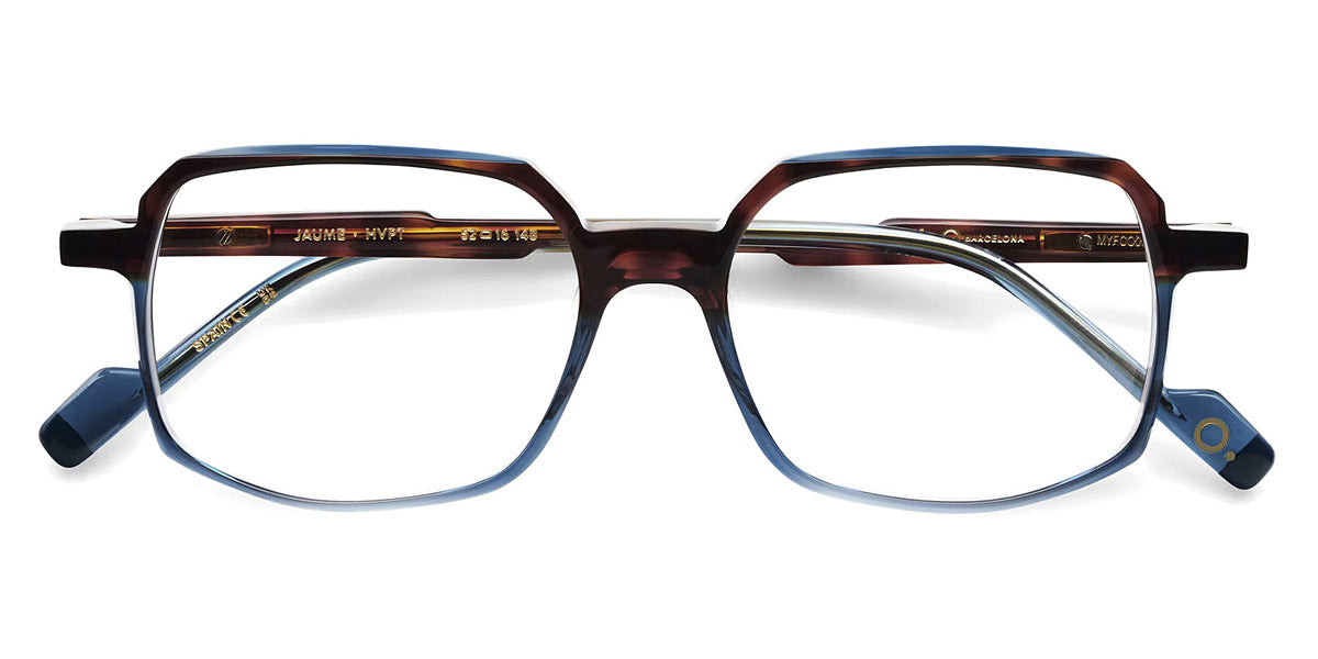 JAUME Eyeglasses by Etnia Barcelona. Color: BKYW Black/Yellow, BLBK Blue/Black, GROG Green/Orange, HVPT HV/PT, Size: 52-16-148. With a touch of asymmetry and refined detailing, the JAUME brings a fresh and daring twist to the classic square shape. Their slightly irregular geometry adds a little bit of visual intrigue, while the dual-color acetate creates a look that’s both subtle and striking. The meticulous craftsmanship shines through in the smooth edges and sculpted temples, while the whisper-light construction keeps these glasses wearable and comfortable all day. Lending a lightweight and lighthearted vibe to your everyday look with the JAUME.