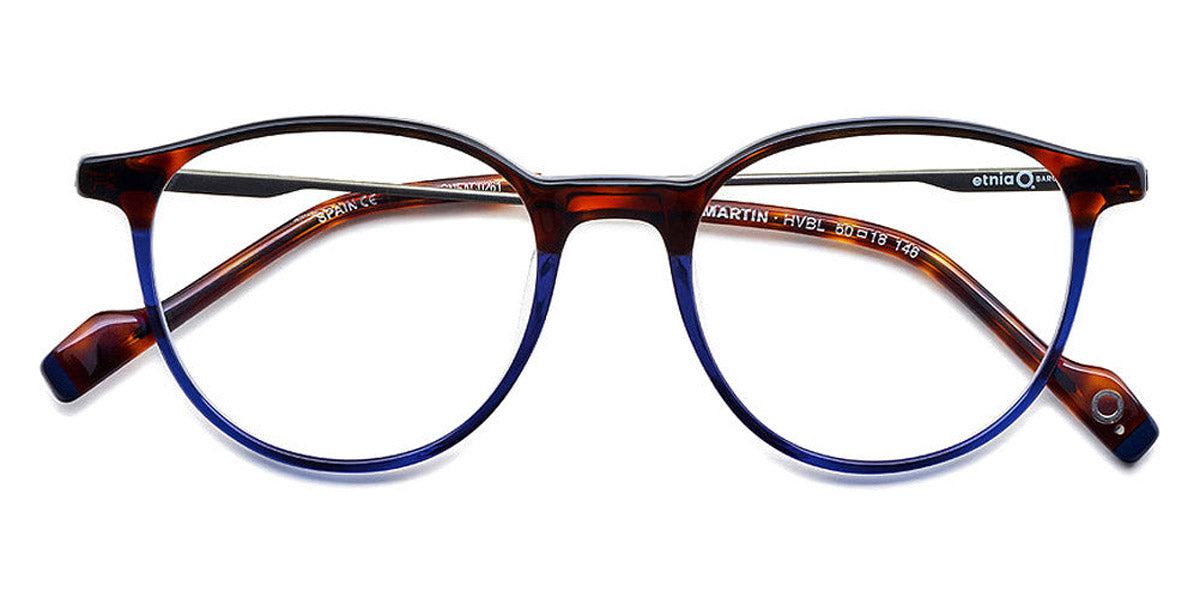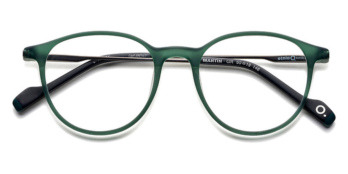 MARTIN Eyeglasses by Etnia Barcelona. Color: OGBK Gold/Black, GR Green, HVBL Havana/Blue, BK Black, Size: 50-18-146. Taking an intellectual approach with its round silhouette that combines both metal and acetate elements, the MARTIN showcases Etnia Barcelona's signature hybrid design. With striking color options, this lightweight build pairs versatility with refined aesthetics, making it adaptable for both professional and casual settings. Unique in look and flawless in function, this model is perfect for wearing every day. Infuse your style with a touch of premium vibrancy by choosing the MARTIN as your go-to frame.
