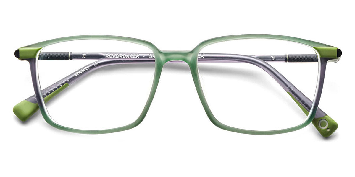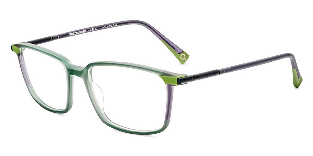 ROADRUNNER Eyeglasses by Etnia Barcelona. Color: BKRD Black/Red, GRBK Green/Black, HVGR Havana/Green, BL Blue, BLOG Blue/Orange, Size: 54-16-148. With its timeless square shape and angular edges, the ROADRUNNER model fuses sporty elegance with lightweight acetate build, making it both practical and visually dynamic. The design stands out with a touch of vintage flair, ideal for those seeking a frame that embodies energy and active style. Comfortable for extended wear and robust enough to survive through the roughest days, the ROADRUNNER is sure to become your personal little secret of looking unique and stunning no matter what.