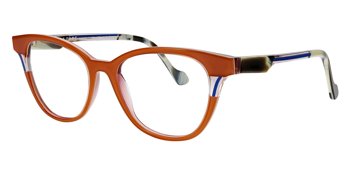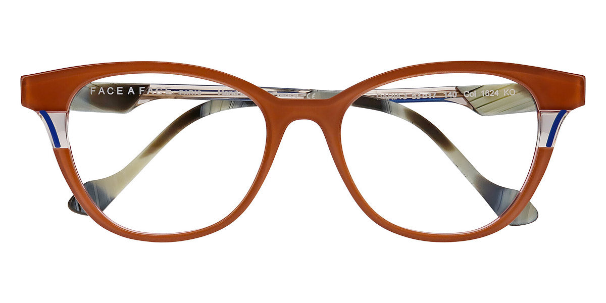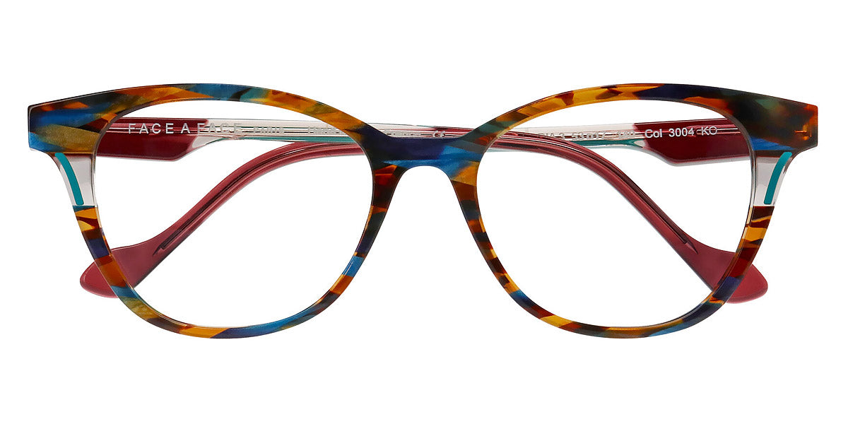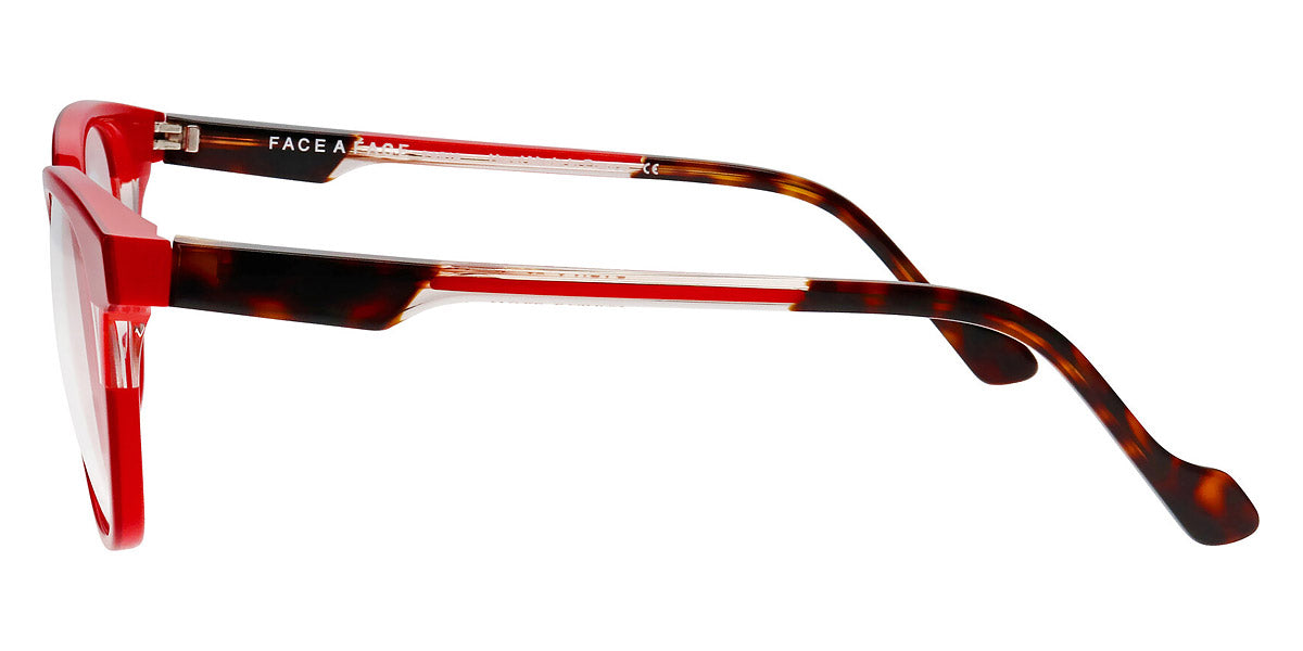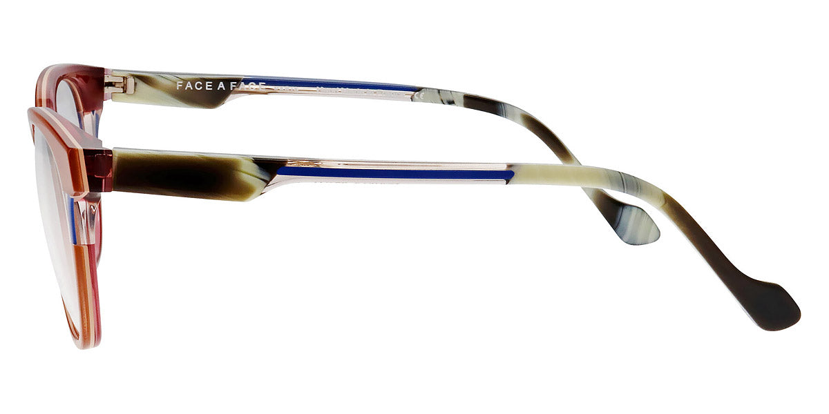 DARIA 3 Eyeglasses by Face A Face. Color: Blue Gray (4012), Blue Tiziano (3004), Camel Transparent Nude Layer (1624), Red Transparent/Flash Red (2216), Tortoise Acajou Blue (0078), Size: 53-17-140. Audacious, artistic, extraordinary… FACE A FACE glasses are at the cutting edge of design. Every frame is meticulously crafted by artisans using only the highest-quality materials: from 100% organic acetate to space-grade titanium. The resulting glasses are durable, lightweight, flexible, hypoallergenic, and most important of all, comfortable. And once coated in the exclusive FACE A FACE color palette, they are nothing short of magic. Full of spirit, light and personality, the spectacles cultivate boldness and vitality.