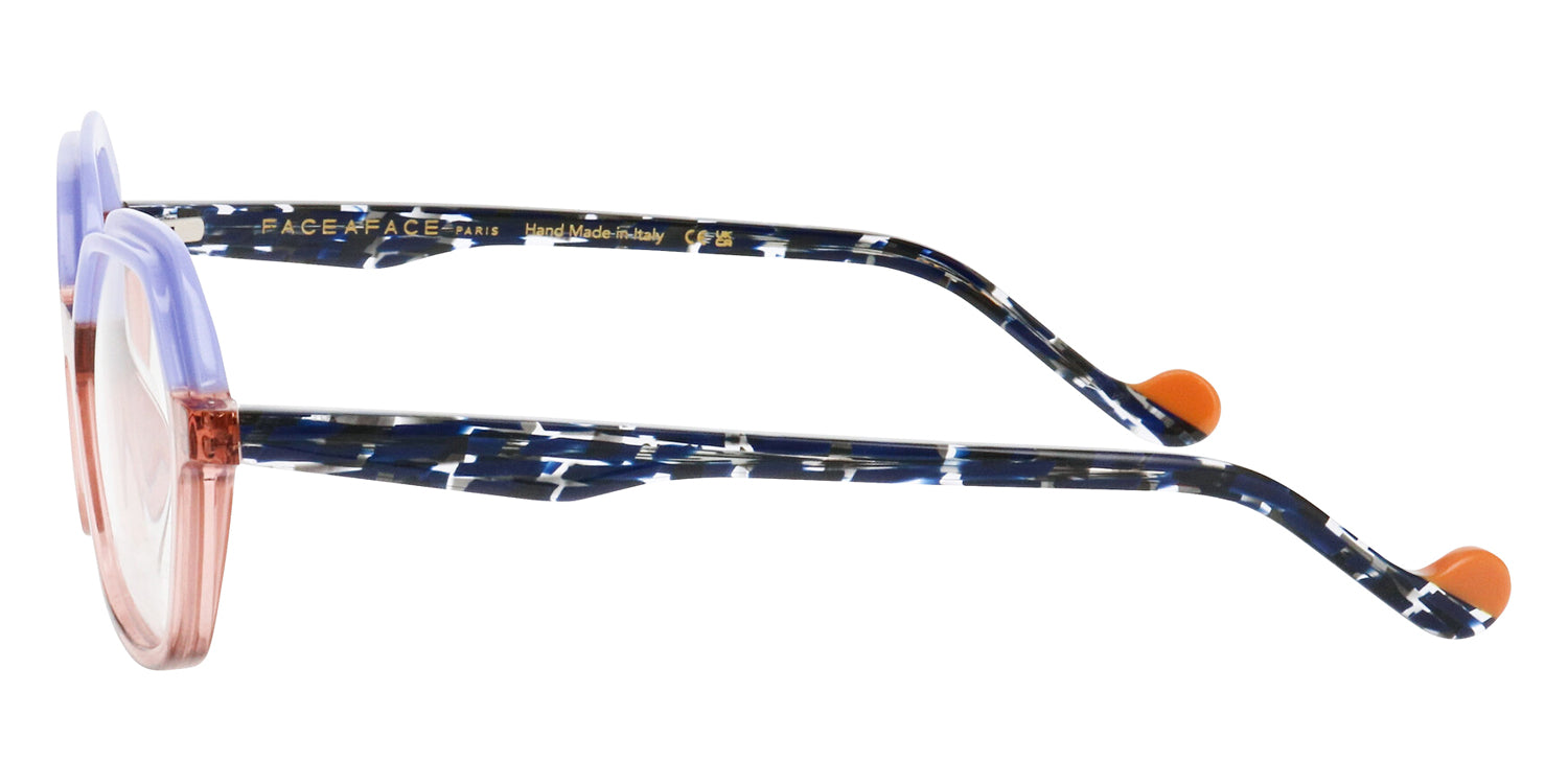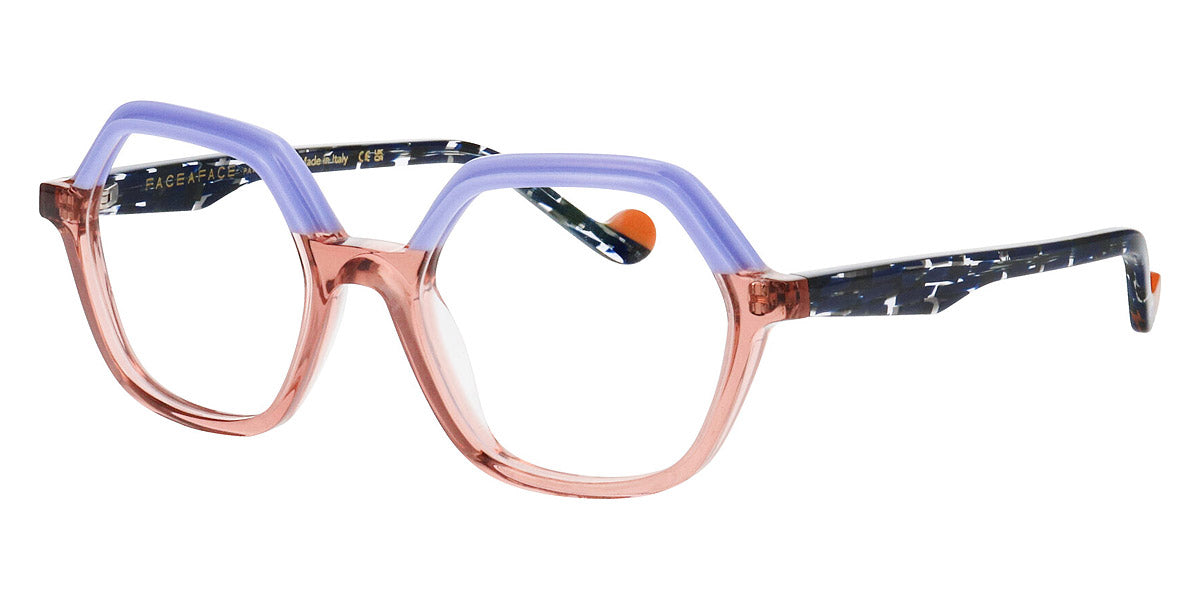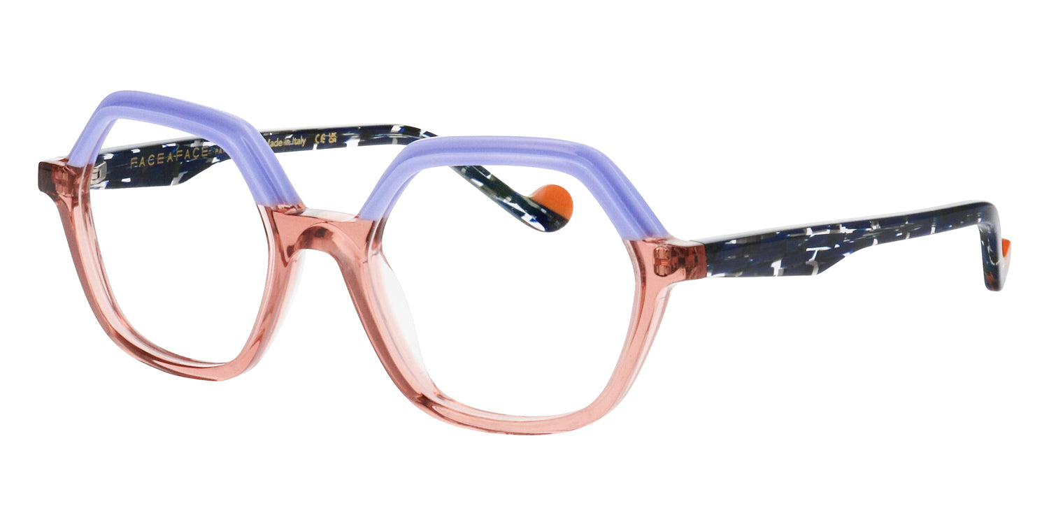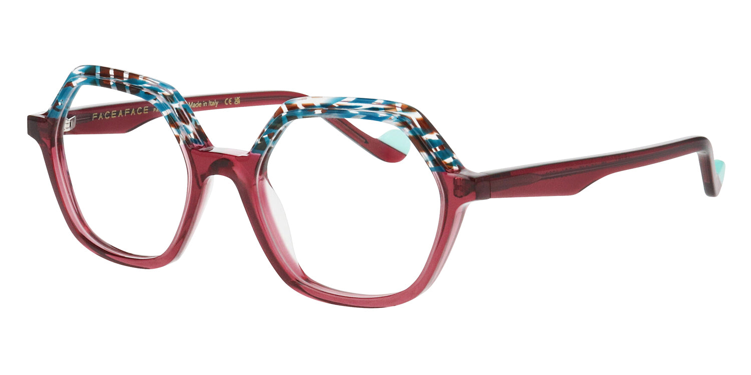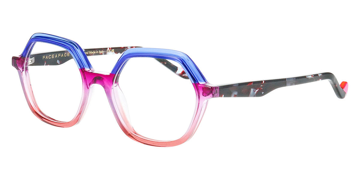 NIJJI 1 Eyeglasses by Face A Face. Material: Acetate, Color: Turquoise Line Brown Pixel, Ultra Blue Transparent, Transparent Caramel, Congo Tortoise Mix, Rose Fushia/Orange, Very Peri, Size: 49-18-140.