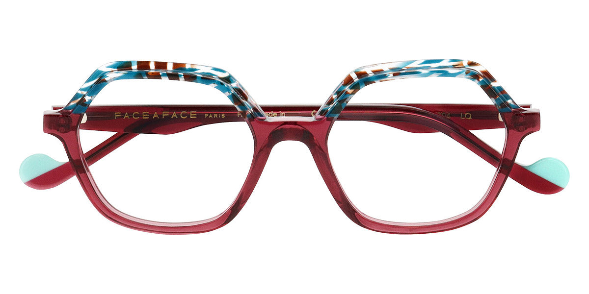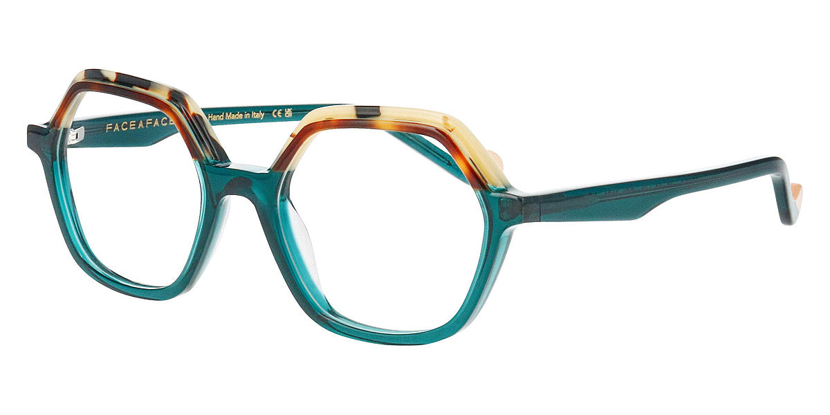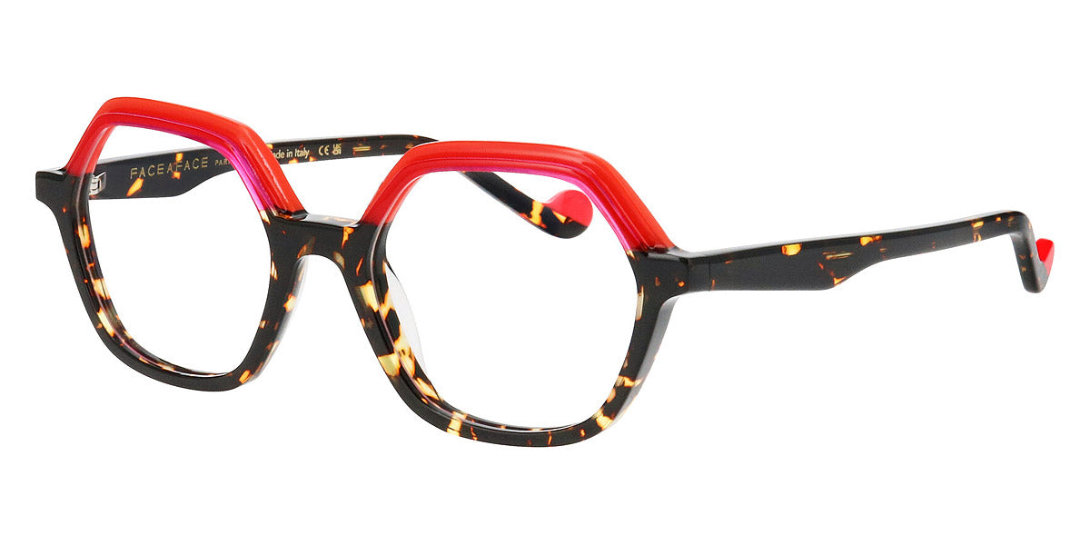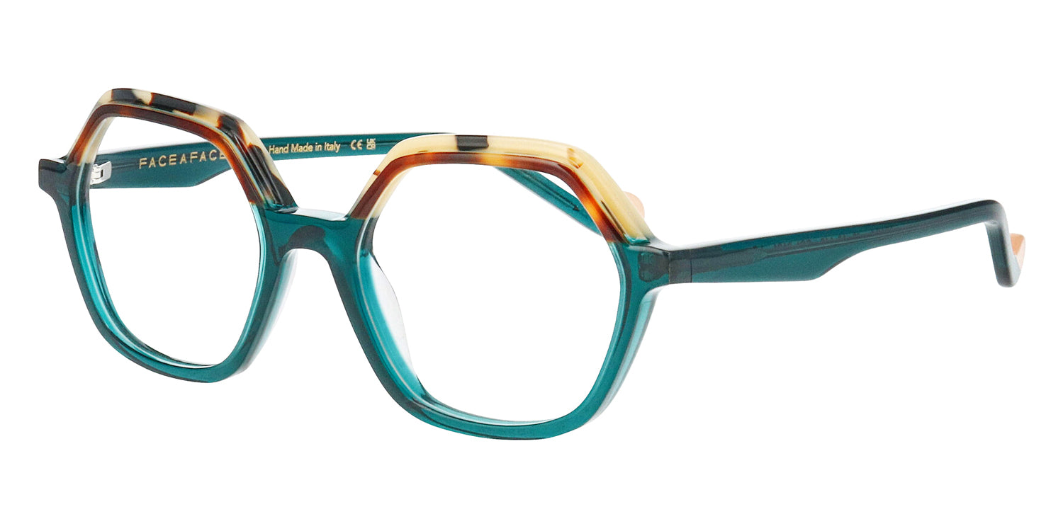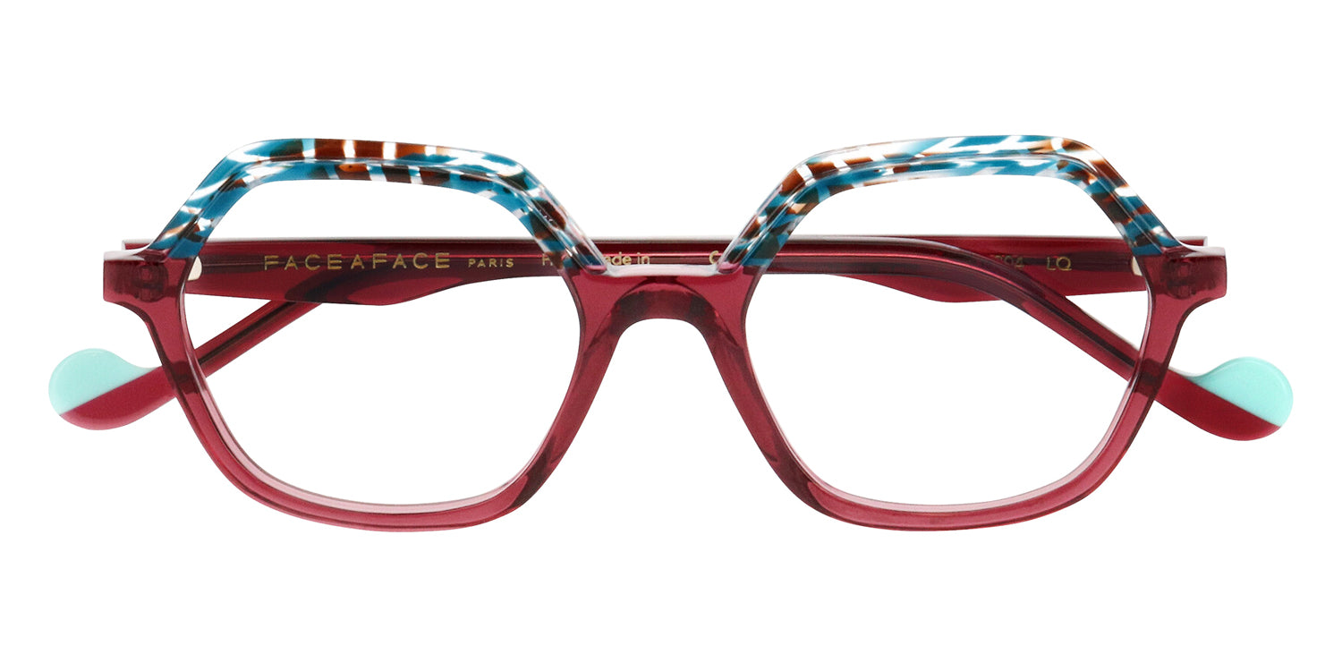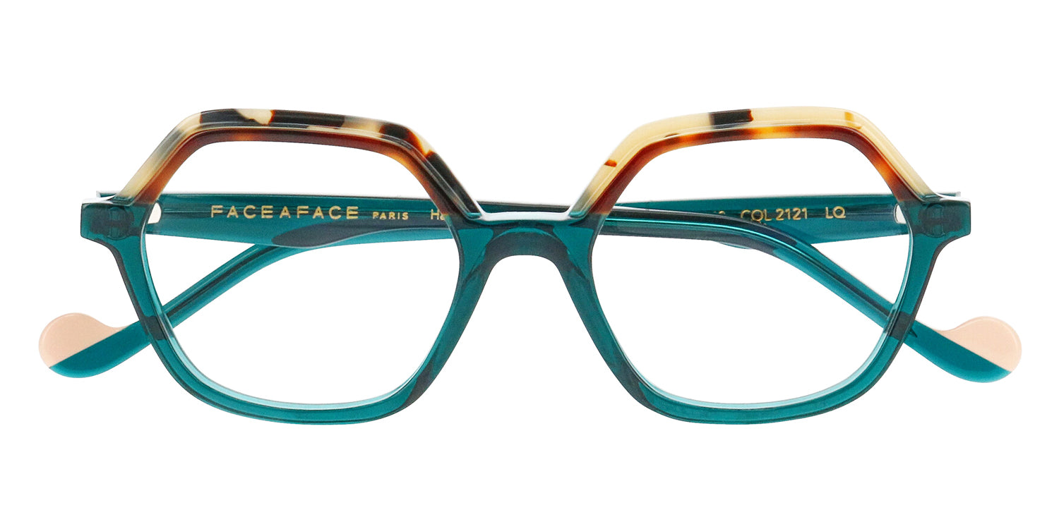 NIJJI 1 Eyeglasses by Face A Face. Material: Acetate, Color: Turquoise Line Brown Pixel, Ultra Blue Transparent, Transparent Caramel, Congo Tortoise Mix, Rose Fushia/Orange, Very Peri, Size: 49-18-140.
