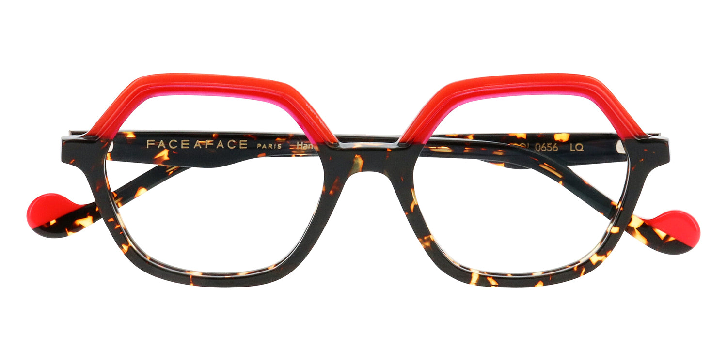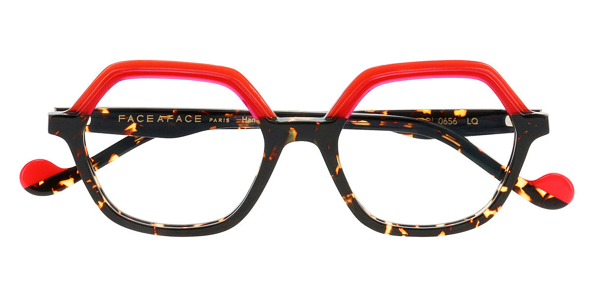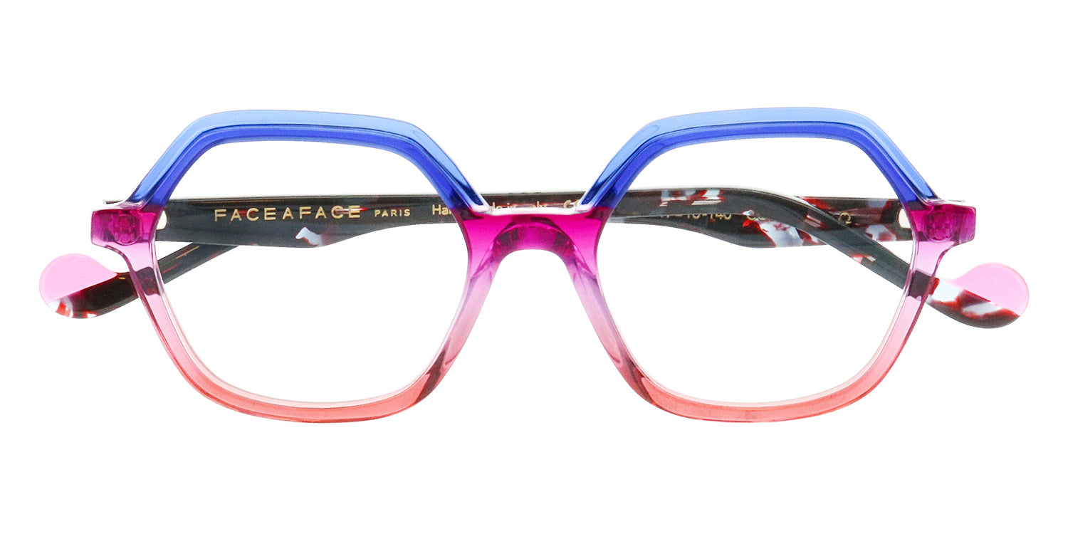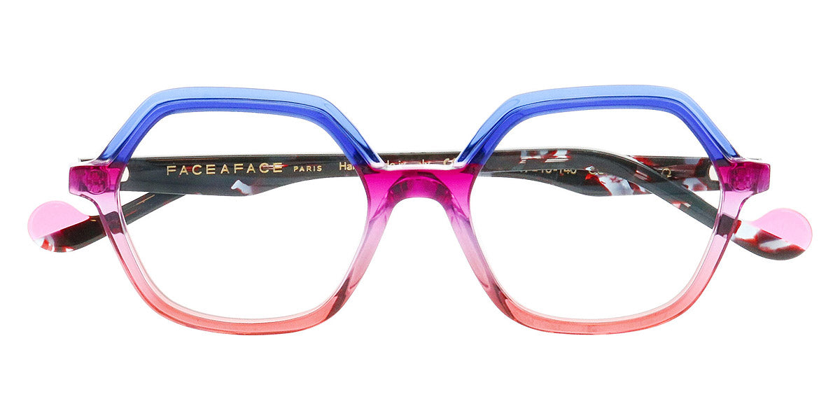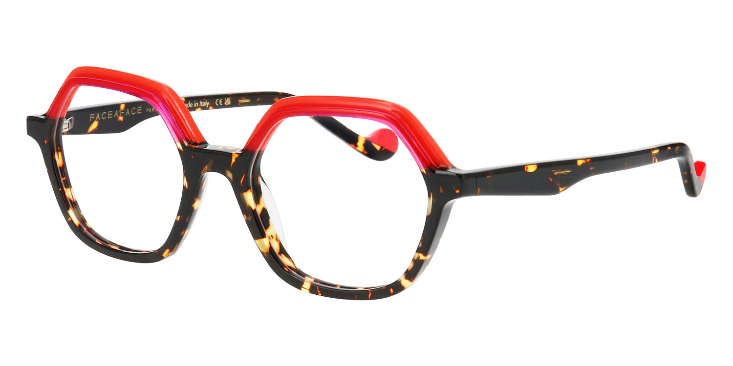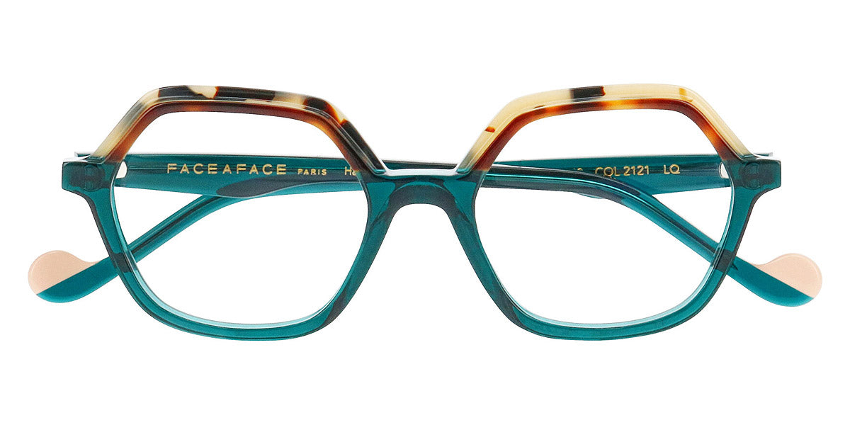 NIJJI 1 Eyeglasses by Face A Face. Material: Acetate, Color: Turquoise Line Brown Pixel, Ultra Blue Transparent, Transparent Caramel, Congo Tortoise Mix, Rose Fushia/Orange, Very Peri, Size: 49-18-140.