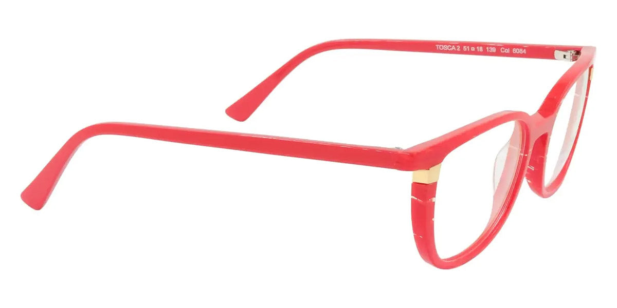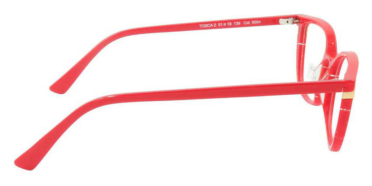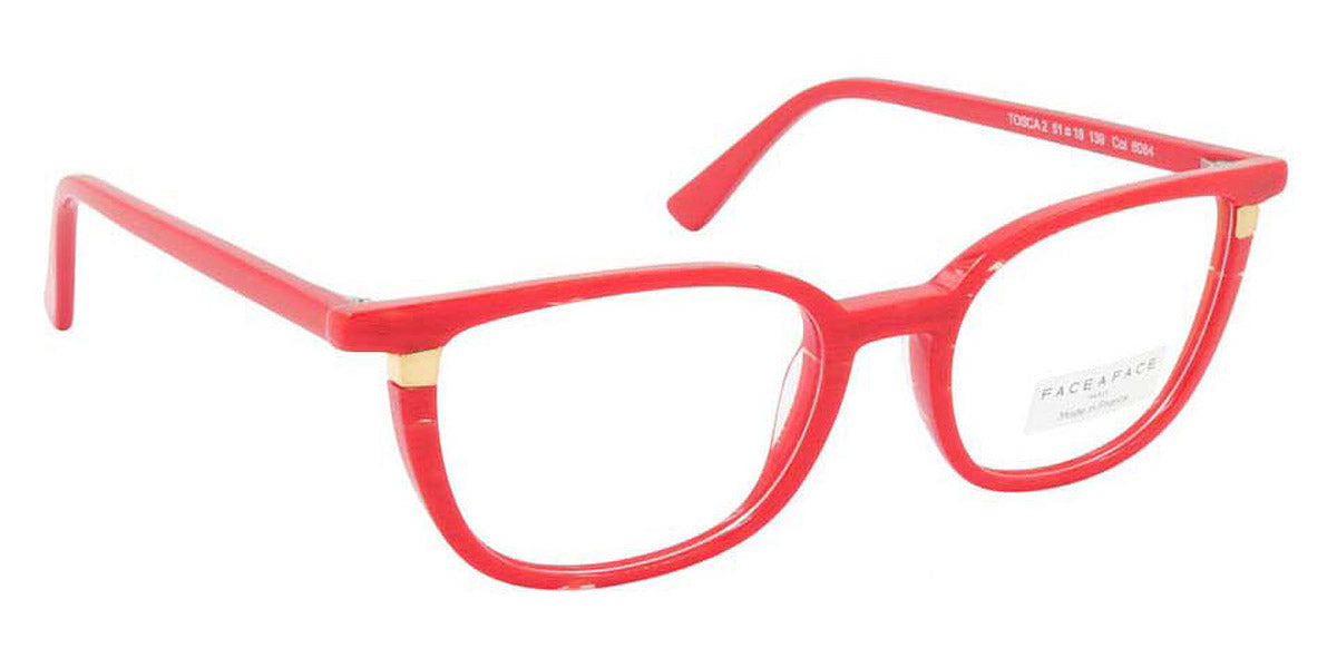 TOSCA 2 Eyeglasses by Face A Face. Color: Pleated Loving Red (6084), Size: 51-18-139. Audacious, artistic, extraordinary… FACE A FACE glasses are at the cutting edge of design. Every frame is meticulously crafted by artisans using only the highest-quality materials: from 100% organic acetate to space-grade titanium. The resulting glasses are durable, lightweight, flexible, hypoallergenic, and most important of all, comfortable. And once coated in the exclusive FACE A FACE color palette, they are nothing short of magic. Full of spirit, light and personality, the spectacles cultivate boldness and vitality.