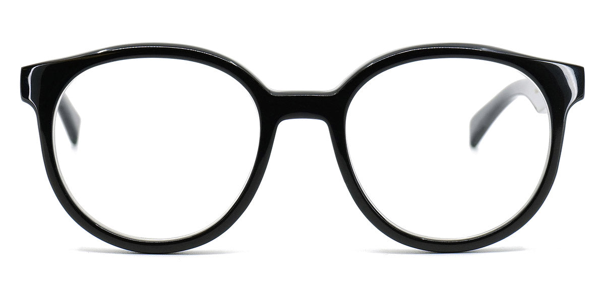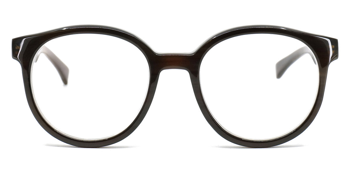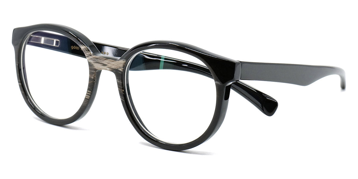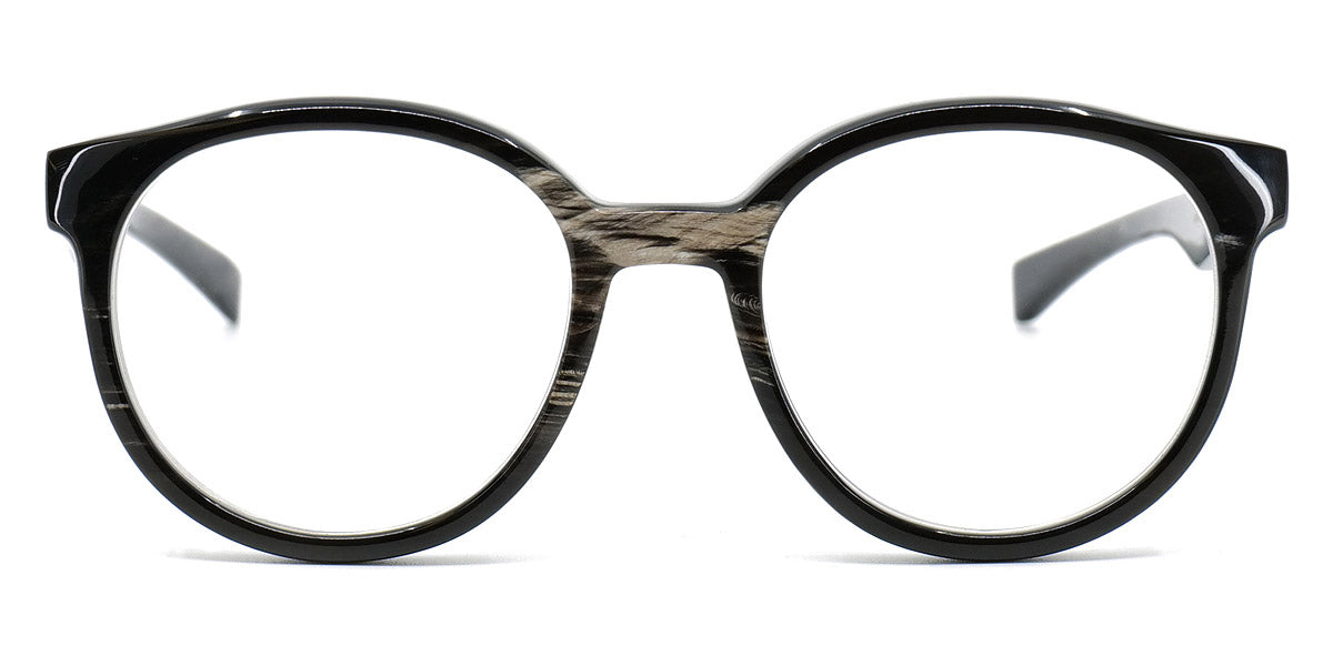 Bell Eyeglasses by Gotti. Color: Black, Dark Brown, Dark Brown/White Figure, Light Brown, Size: 47-19-140. Gotti's Bell frames are a true expression of contemporary design and innovative craftsmanship. The unique combination of materials and geometric shapes sets them apart, making a bold style statement. These frames are for individuals who seek eyewear that transcends convention and embraces creativity. The Bell frames are designed to make a distinct fashion statement.
