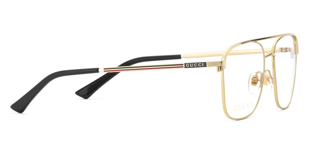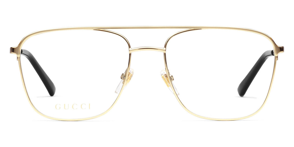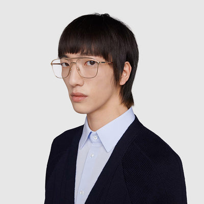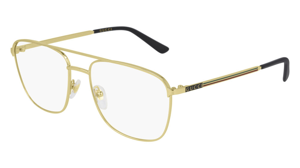 GG0833O Eyeglasses by Gucci. Color: Black/Gold, Gold, Gunmetal, Size: 55-17-145. Gucci glasses are glamorous and chic, with bold contours and exaggerated volumes, which are ultimate forms of self-expression. Inspired by the vintage era, the reinterpreted iconic eyewear silhouettes are embellished with elaborate decorations and bright colors. Each and every design represents the pinnacle of Italian craftsmanship and is unsurpassed for its quality and attention to detail. Every new collection is a range of striking shapes and colors; an outstanding mix of playful vibes with retro undertones.