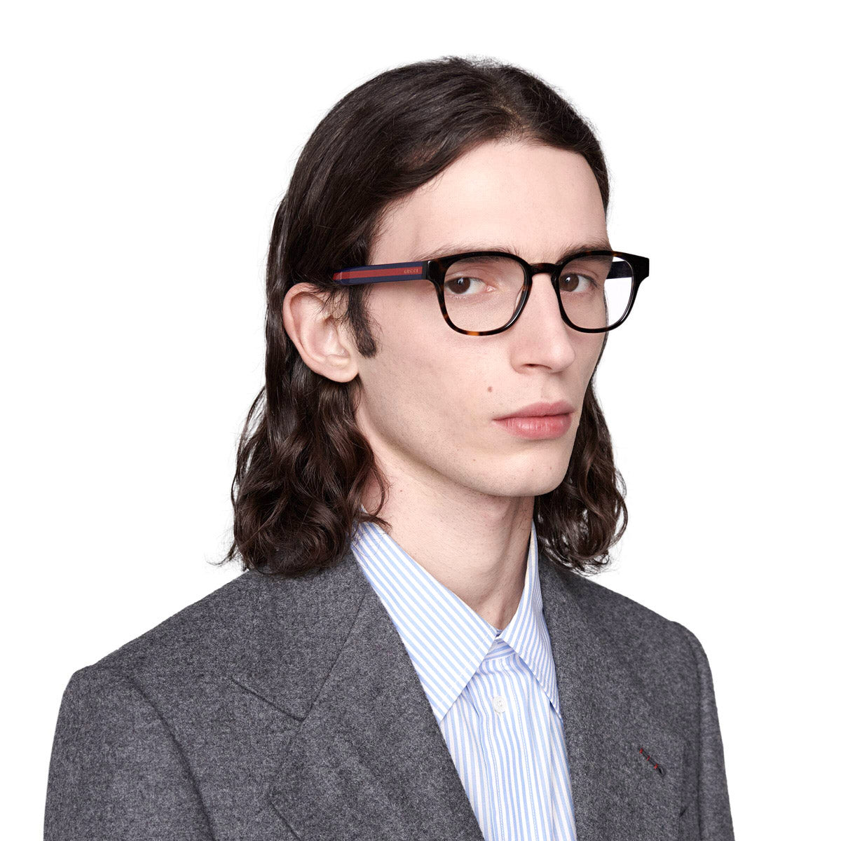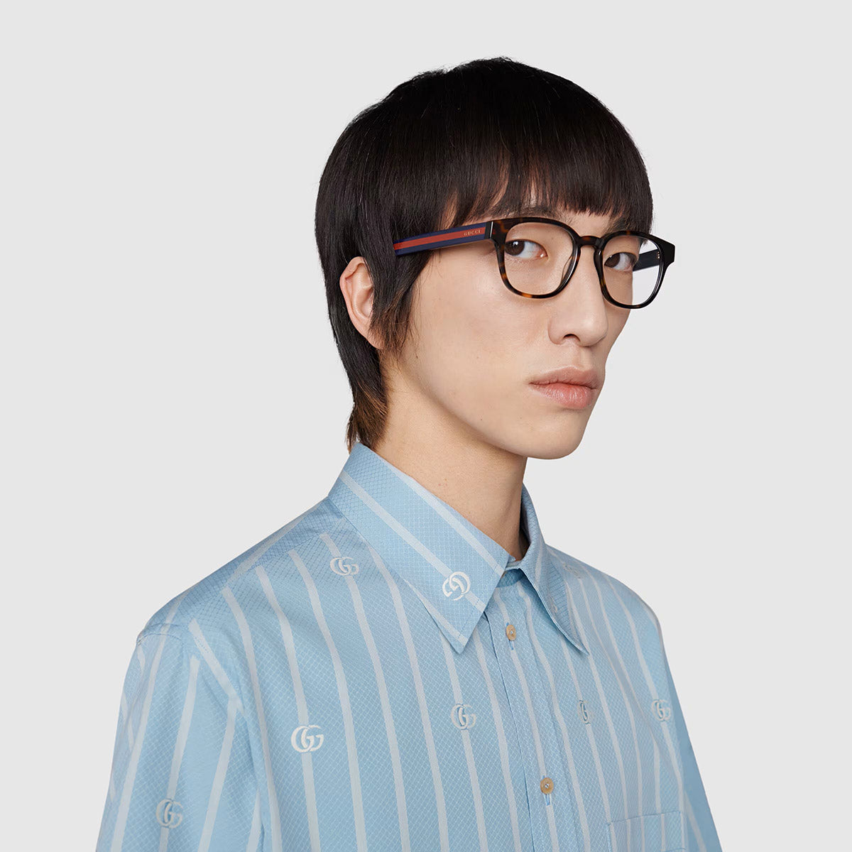 GG0927O Eyeglasses by Gucci. Color: Black, Black/Green, Gray, Havana/Blue, Size: 49-19-145. Gucci glasses are glamorous and chic, with bold contours and exaggerated volumes, which are ultimate forms of self-expression. Inspired by the vintage era, the reinterpreted iconic eyewear silhouettes are embellished with elaborate decorations and bright colors. Each and every design represents the pinnacle of Italian craftsmanship and is unsurpassed for its quality and attention to detail. Every new collection is a range of striking shapes and colors; an outstanding mix of playful vibes with retro undertones.