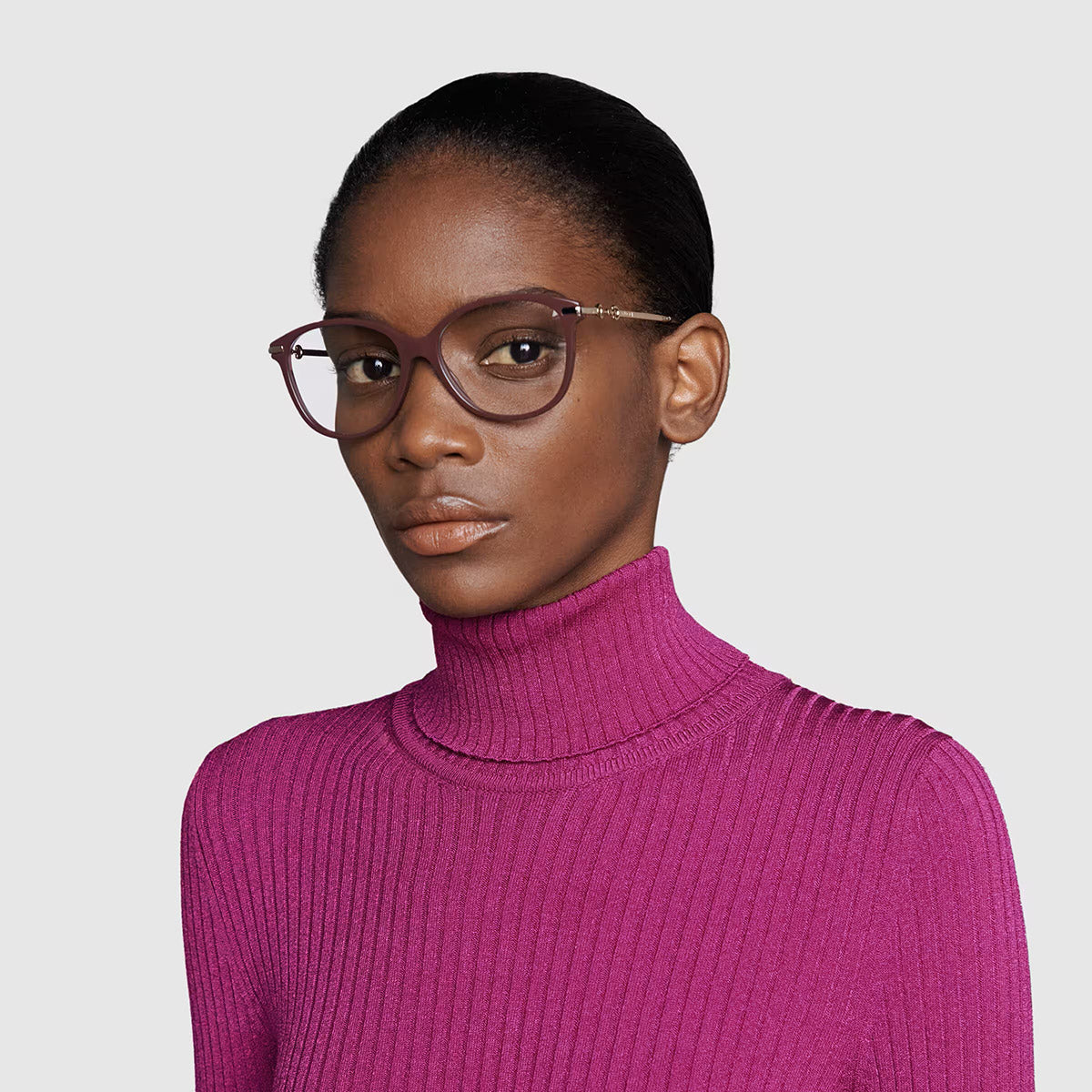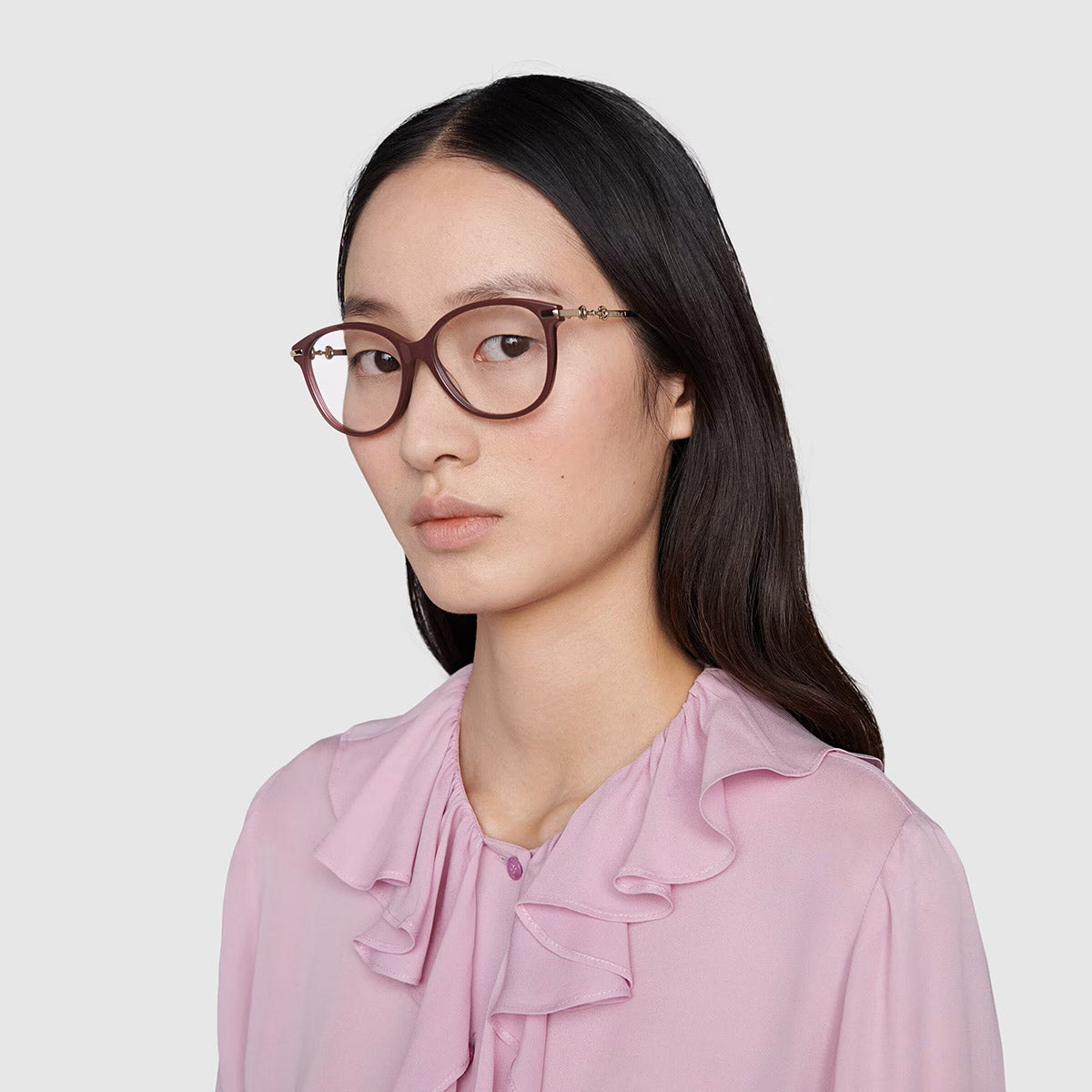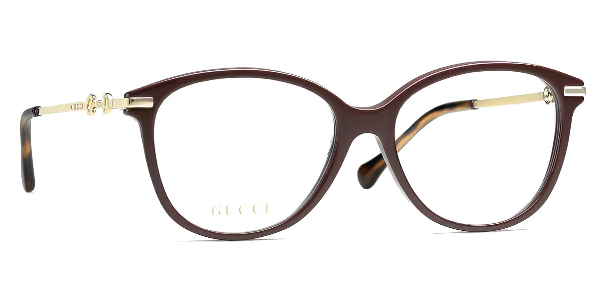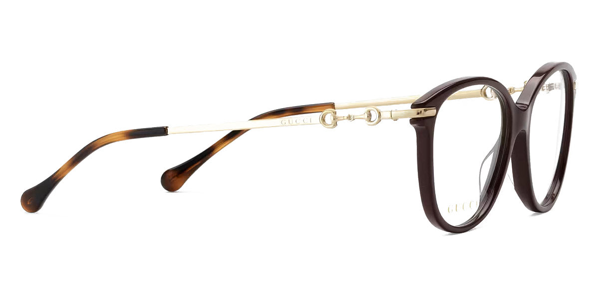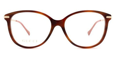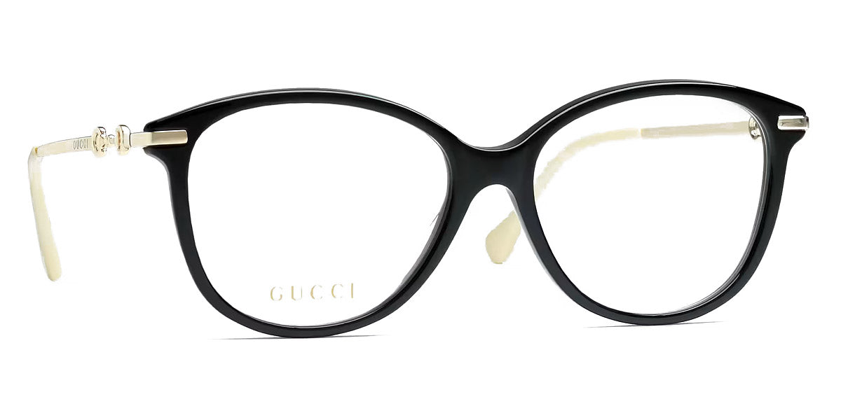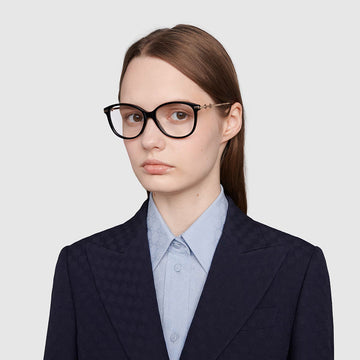 GG0967O Eyeglasses by Gucci. Color: Black/Gold, Brown/Gold, Havana/Gold, Size: 53-16-140. Gucci glasses are glamorous and chic, with bold contours and exaggerated volumes, which are ultimate forms of self-expression. Inspired by the vintage era, the reinterpreted iconic eyewear silhouettes are embellished with elaborate decorations and bright colors. Each and every design represents the pinnacle of Italian craftsmanship and is unsurpassed for its quality and attention to detail. Every new collection is a range of striking shapes and colors; an outstanding mix of playful vibes with retro undertones.
