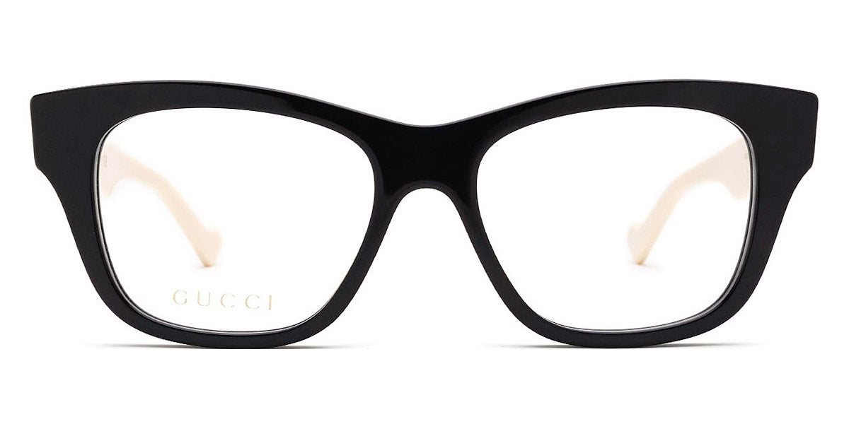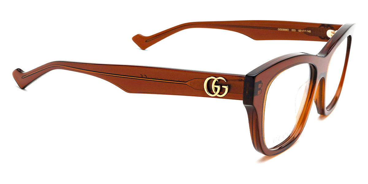 GG0999O Eyeglasses by Gucci. Color: Black, Black/White, Brown, Size: 52-17-145. Gucci glasses are glamorous and chic, with bold contours and exaggerated volumes, which are ultimate forms of self-expression. Inspired by the vintage era, the reinterpreted iconic eyewear silhouettes are embellished with elaborate decorations and bright colors. Each and every design represents the pinnacle of Italian craftsmanship and is unsurpassed for its quality and attention to detail. Every new collection is a range of striking shapes and colors; an outstanding mix of playful vibes with retro undertones.