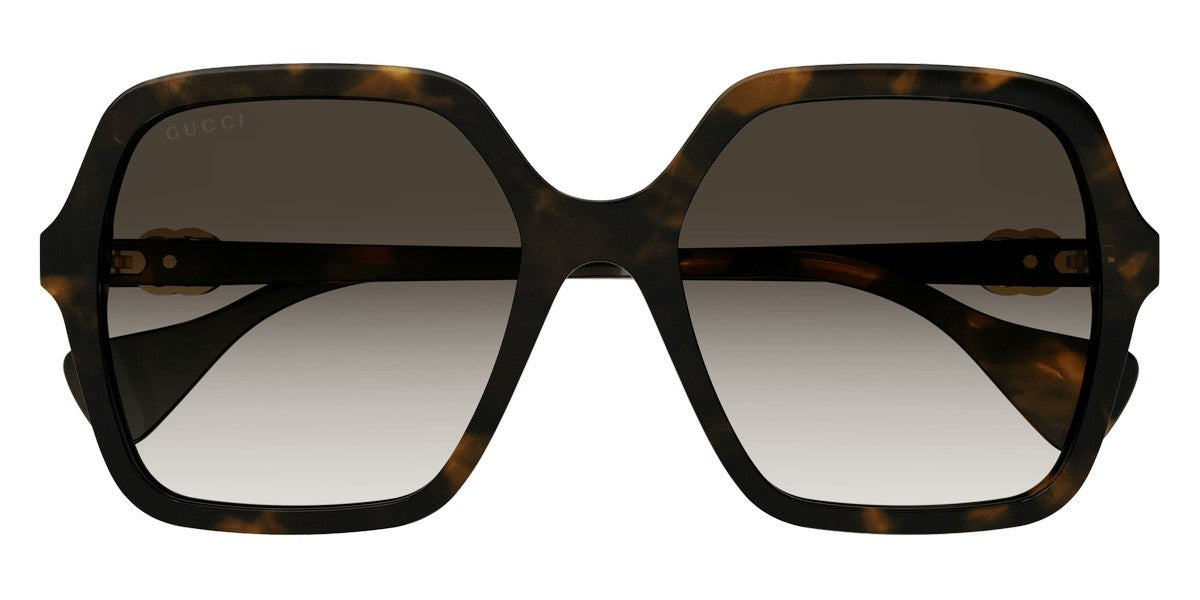 GG1072SA Sunglasses by Gucci. Color: Black, Havana, Size: 56-18-145. Gucci glasses are glamorous and chic, with bold contours and exaggerated volumes, which are ultimate forms of self-expression. Inspired by the vintage era, the reinterpreted iconic eyewear silhouettes are embellished with elaborate decorations and bright colors. Each and every design represents the pinnacle of Italian craftsmanship and is unsurpassed for its quality and attention to detail. Every new collection is a range of striking shapes and colors; an outstanding mix of playful vibes with retro undertones.