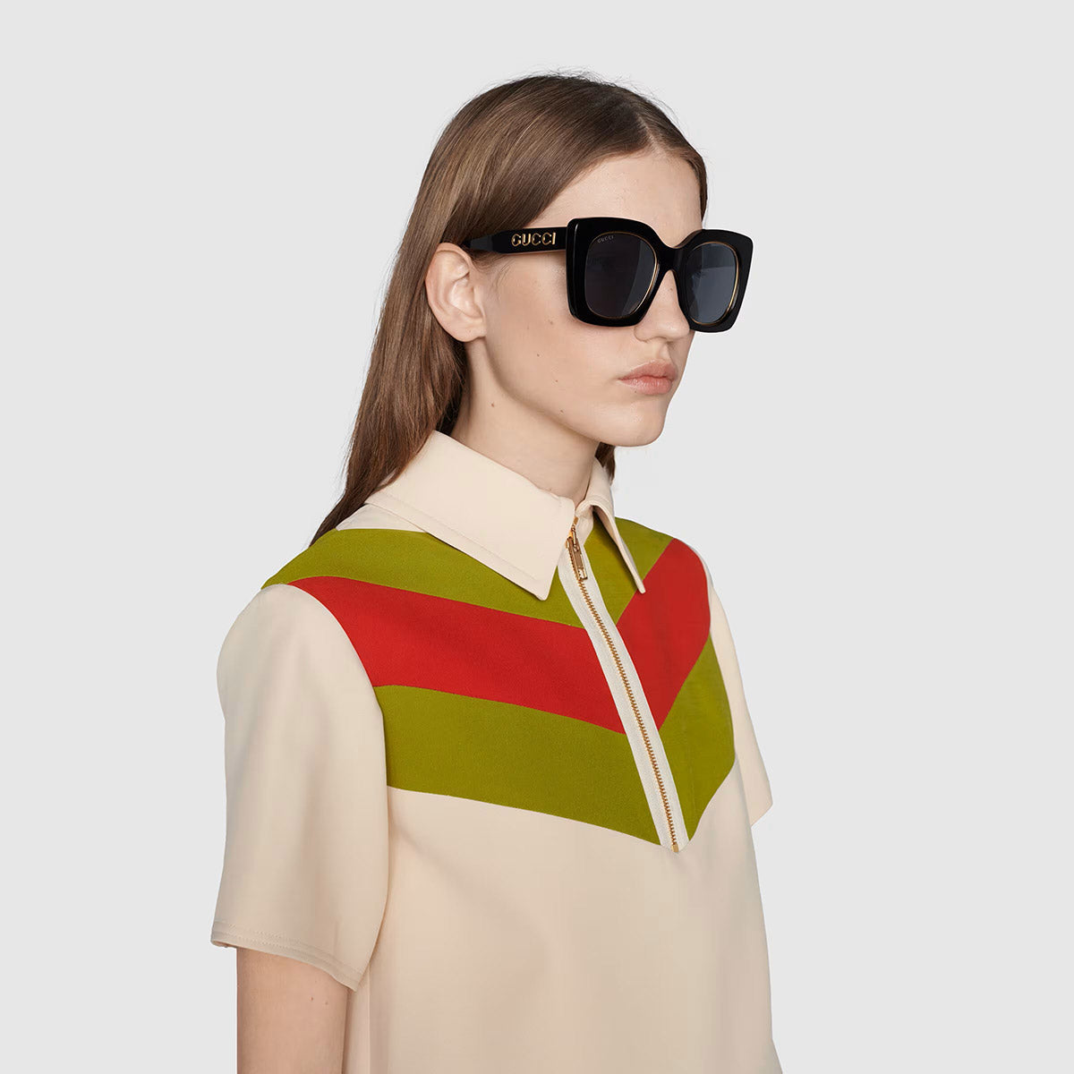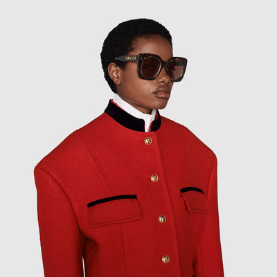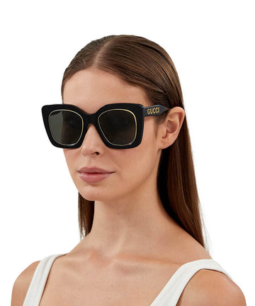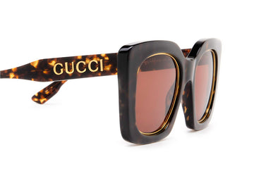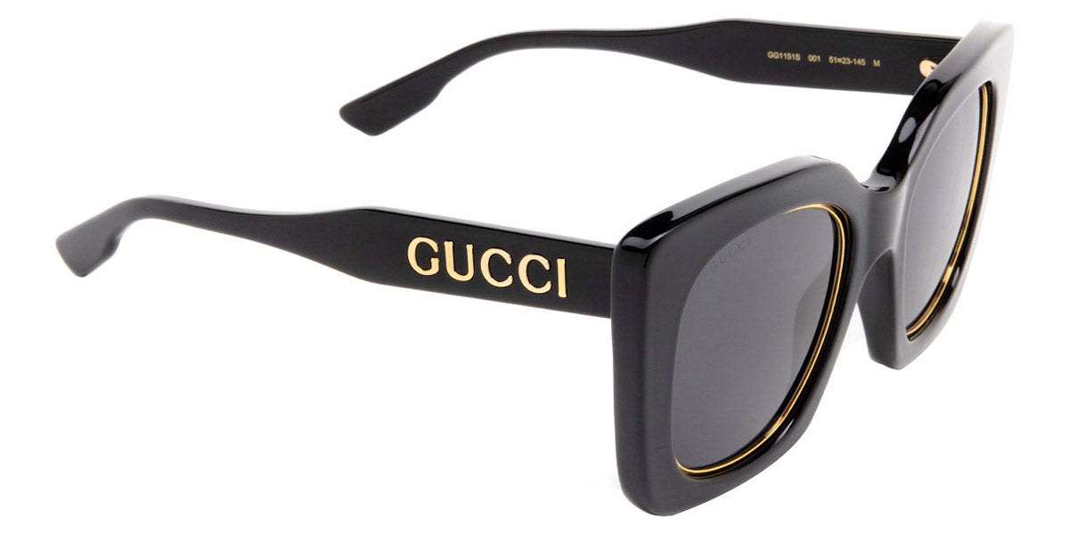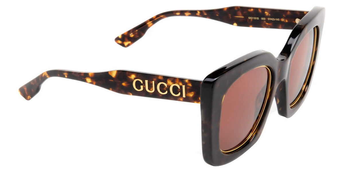 GG1151S Sunglasses by Gucci. Color: Black, Havana, Size: 51-23-145. Gucci glasses are glamorous and chic, with bold contours and exaggerated volumes, which are ultimate forms of self-expression. Inspired by the vintage era, the reinterpreted iconic eyewear silhouettes are embellished with elaborate decorations and bright colors. Each and every design represents the pinnacle of Italian craftsmanship and is unsurpassed for its quality and attention to detail. Every new collection is a range of striking shapes and colors; an outstanding mix of playful vibes with retro undertones.