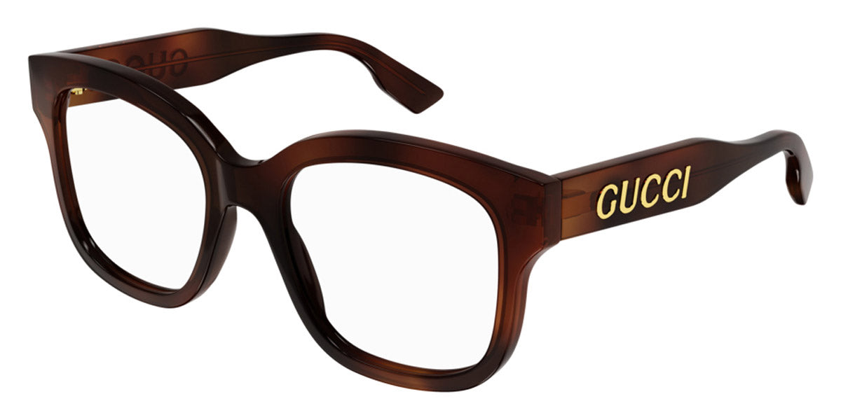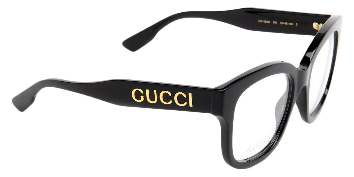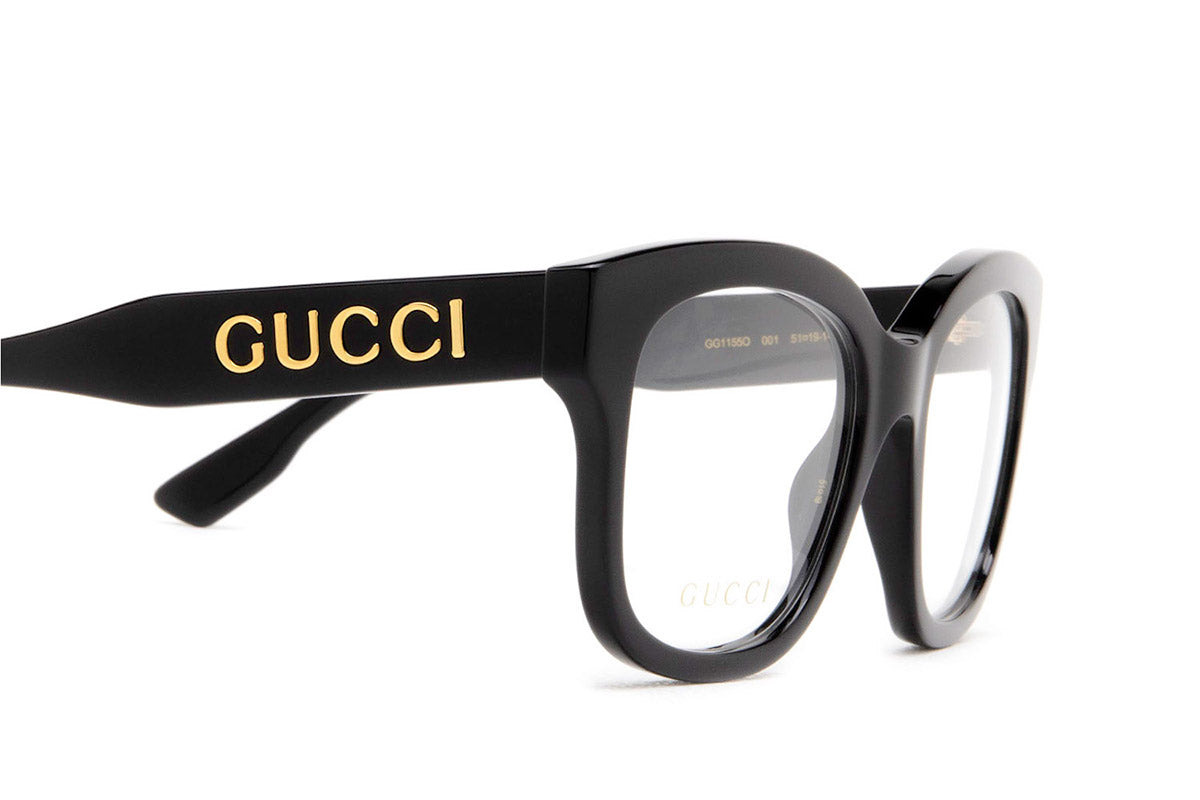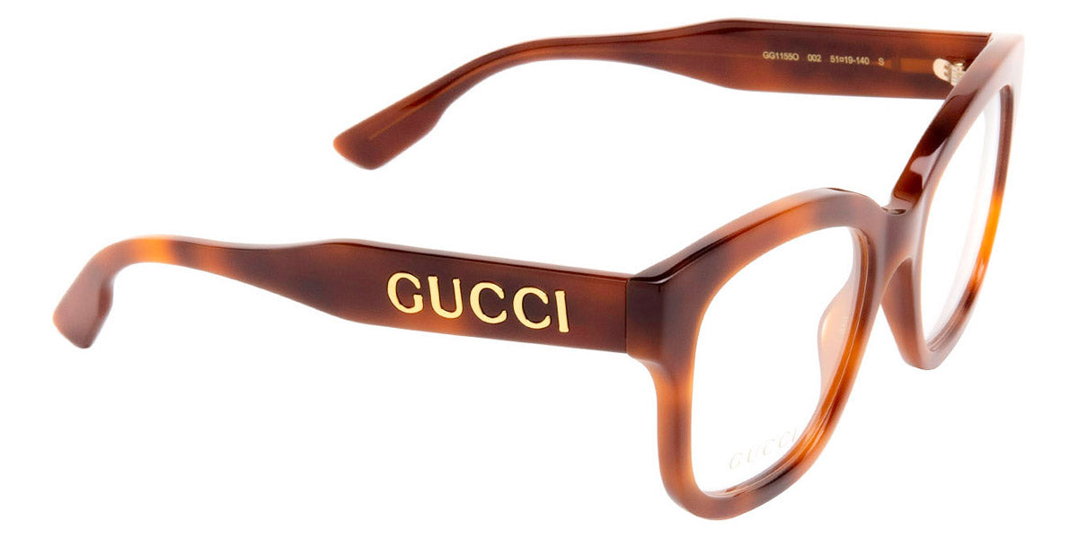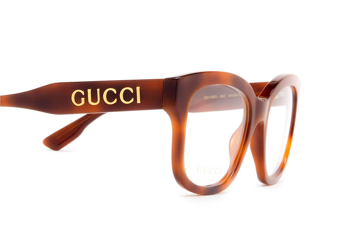 GG1155O Eyeglasses by Gucci. Color: Black, Havana, Size: 51-19-140. Gucci glasses are glamorous and chic, with bold contours and exaggerated volumes, which are ultimate forms of self-expression. Inspired by the vintage era, the reinterpreted iconic eyewear silhouettes are embellished with elaborate decorations and bright colors. Each and every design represents the pinnacle of Italian craftsmanship and is unsurpassed for its quality and attention to detail. Every new collection is a range of striking shapes and colors; an outstanding mix of playful vibes with retro undertones.