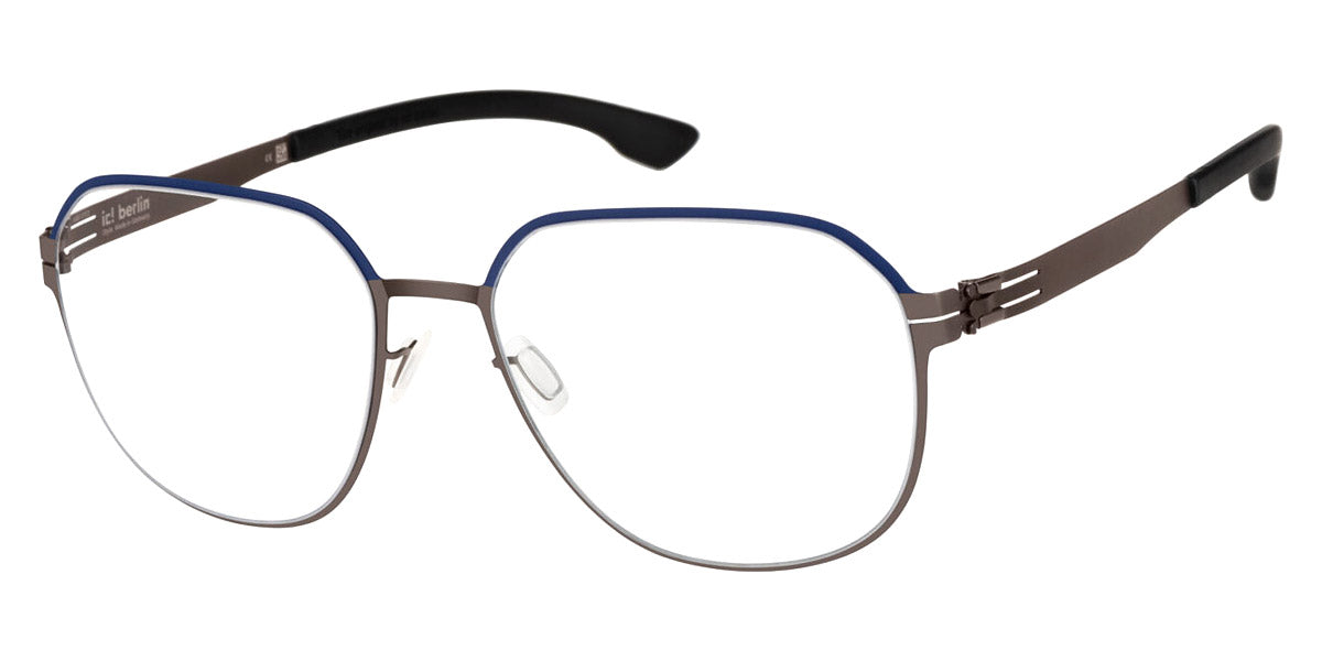 Nadea Eyeglasses by Ic! Berlin®. Color: Blue-Graphite, Bordeaux-Rose, Bronze, Gun-Metal, Size: 55-18-145. Utilizing cutting-edge technologies and innovative methods, Ic! Berlin® creates real works of art that are less about showing style, but more about expressing an attitude. Handcrafted from premium-quality stainless steel, titanium, synthetic, and natural materials, Ic! Berlin® frames are robust, lightweight and ultra-modern accessories. Each frame features the original, no-screw hinge system specially developed by the brand - an avant-garde design that turns an individual look into a way of life.