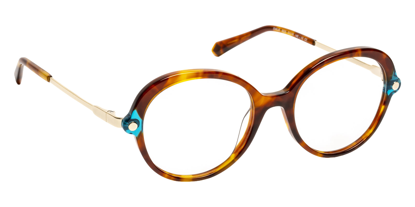 EMILIE Eyeglasses by J.F. Rey. Color: BROWN/PURPLE, NICE BLACK/BROWN, PLUM/BLACK, DEMI GREEN/GREEN, DEMI/TURQUOISE, Size: 51-18-140. Discover the exquisite Emilie eyeglasses by J. F. Rey, a harmonious blend of acetate and metal in a captivating cat-eye design. Offered in a singular color combination, this model features metal frames complemented by acetate end tips for a refined touch. Emilie stands out with its distinctive perforations adorning the upper rim, creating an alluring visual identity accentuated by the interplay of openwork patterns across the eyebrows. The chromatic finish and bi-coloring of the metal frame enhance its elegant shape, adding a touch of opulence to your eyewear collection. With its fusion of materials, meticulous craftsmanship, and artful detailing, the Emilie model captures the essence of J. F. Rey's commitment to creating eyeglasses that are both fashionable and uniquely sophisticated.