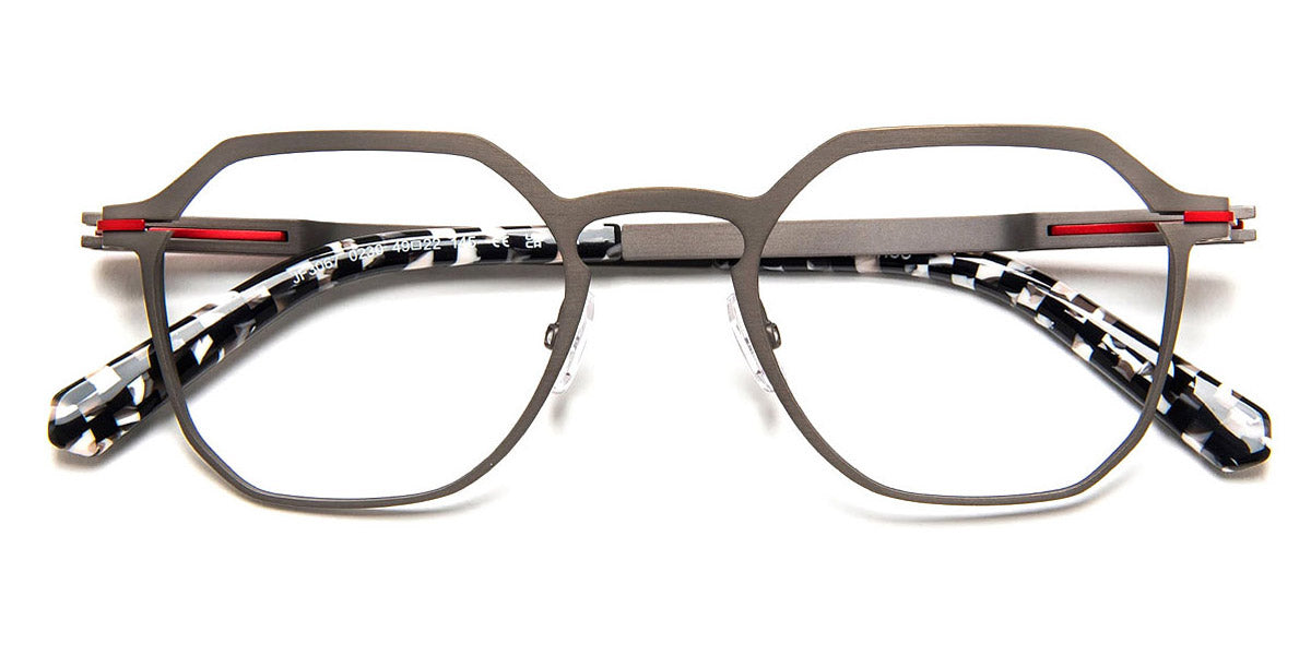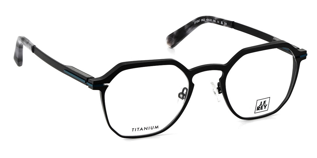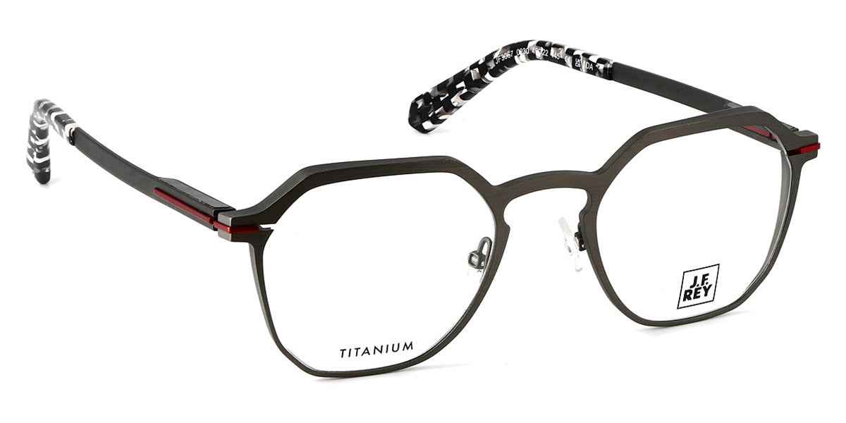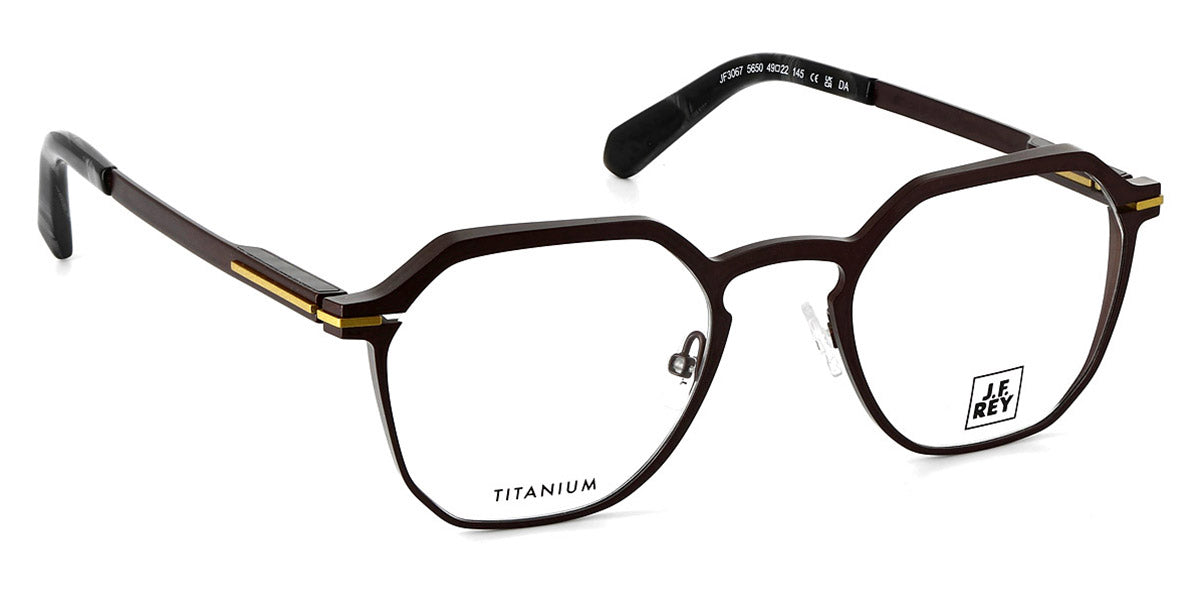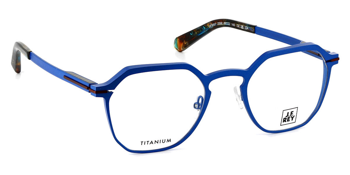 JF3067 Eyeglasses by J.F. Rey. Color: 0230 Gun/Red, 0822 Black/Blue, 2598 Blue/Brown, 2943 Blue/Khaki, 5650 Brown/Yellow, Size: 49-22-145.