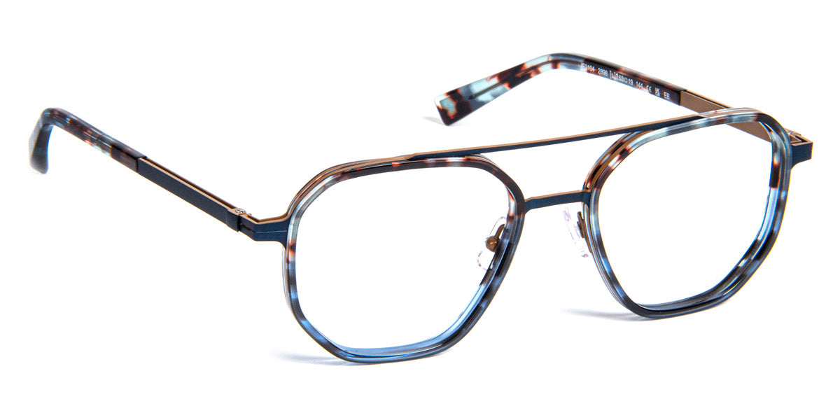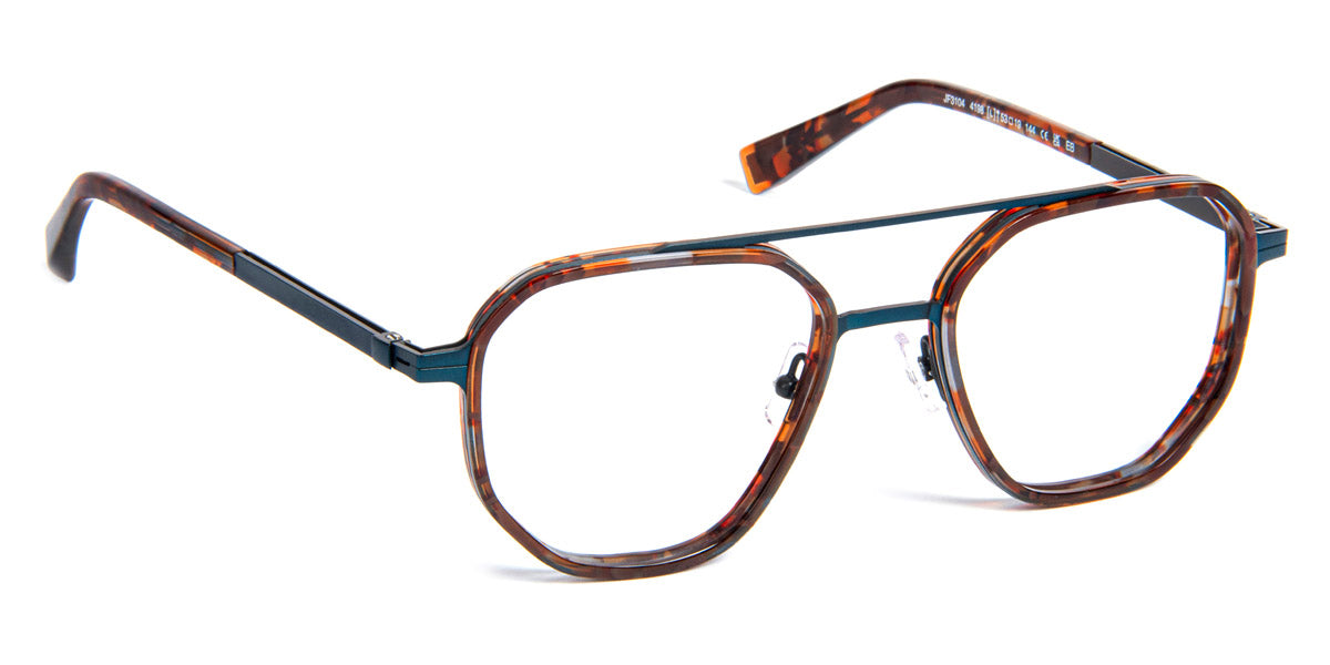 JF3104 Eyeglasses by J.F. Rey. Color: STRIPES BLUE/GREEN, DEMI BLUE/BROWN, DEMI BLUE, GREEN HORN/OLIVE, BRUSHED BLACK/ORANGE, Size: 53-19-144. The JF3104 eyeglasses for men feature a classic aviator shape in a full-rim frame crafted from a sophisticated blend of acetate and metal. Available in dynamic color combinations such as Stripes Blue/Green and Green Horn/Olive, this model perfectly balances a timeless silhouette with J.F. Rey's innovative use of materials and vibrant hues. It offers a stylish and comfortable solution for everyday wear.
