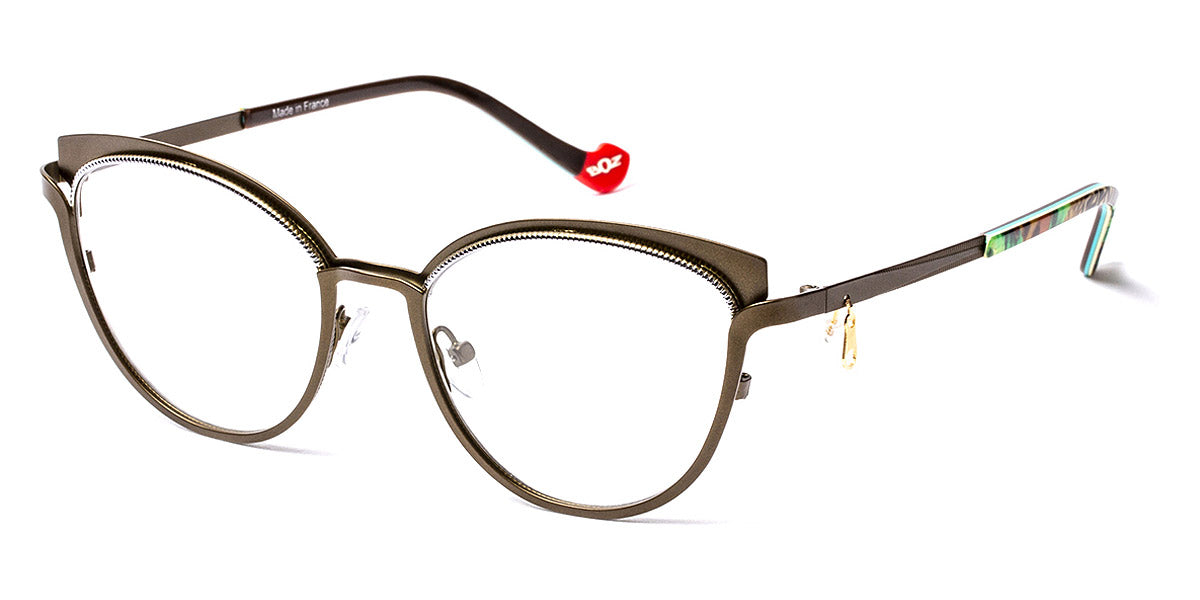 Lydie Eyeglasses by J.F. Rey. Color: 2060 Turquoise/Brick, 4505 Khaki/Ruthenium, Size: 52-18-140. Discover the epitome of grace with the J. F. Rey Lydie glasses, where classic design meets avant-garde flair. The rectangular frames exude a refined charm, while the intricate details on the temples add a touch of modernity. Lydie glasses are a harmonious blend of tradition and innovation, perfect for those who appreciate timeless elegance with a contemporary edge. Embrace the allure of Lydie and make a lasting impression wherever you go.