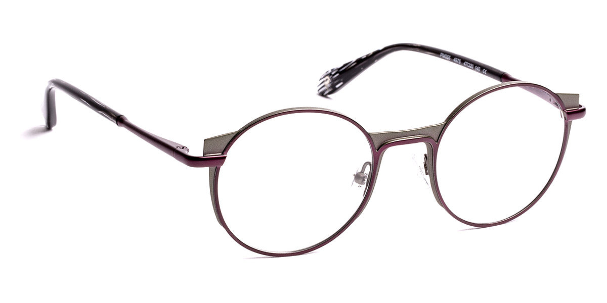 PM055 Eyeglasses by J.F. Rey. Color: 4975 Plum/Green, 7509 Gunmetal Brilliant/Plum, Size: 47-20-140. Discover the world of avant-garde fashion with PM055 by J.F. Rey. These eyeglasses showcase a fearless combination of shapes and materials, creating a look that is both edgy and sophisticated. The frames feature unexpected details that add a touch of intrigue, making PM055 the perfect accessory for individuals who want to make a statement with their eyewear. Embrace the bold and unconventional with these avant-garde frames.