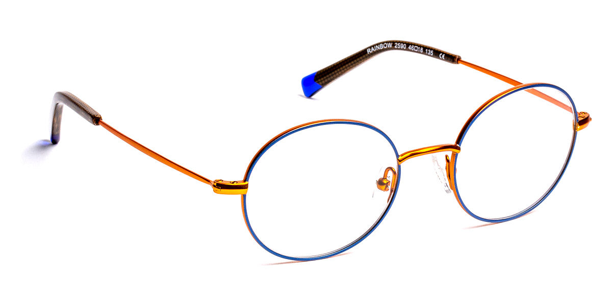 Rainbow Eyeglasses by J.F. Rey. Color: 2590 Blue/Brown, 3050 Red/Satin Gold, 6045 Copper/Khaki, Size: 46-18-135. Introducing the captivating Rainbow eyeglasses from J.F. Rey - where elegance meets innovation! Designed with meticulous attention to detail, these round-shaped glasses effortlessly enhance your facial features and add a touch of softness to your look. Crafted with the utmost care, J.F. Rey masterfully combines the brilliance, lightness, and flexibility of metal in this timeless piece. Experience a harmonious blend of clean lines, geometric shapes, and stunning two-tone satin-finish colors that exude sophistication. The Rainbow not only showcases J.F. Rey's commitment to technological innovation, but also embodies effortless style. Step up your eyewear game with these classic yet contemporary glasses that are sure to turn heads wherever you go.