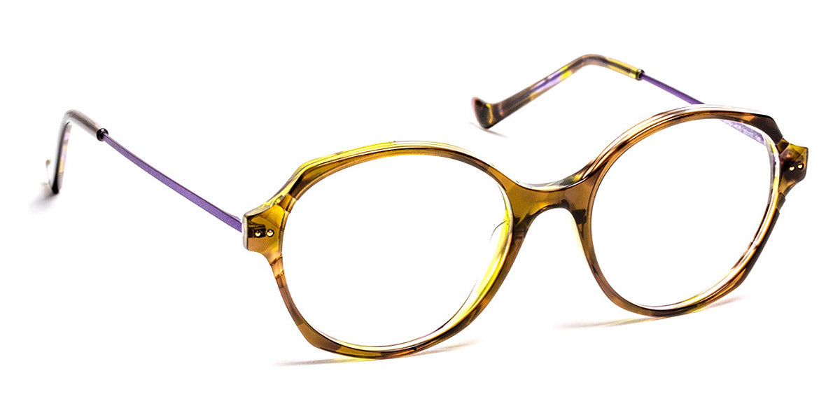 Raja Eyeglasses by J.F. Rey. Color: 4570 Khaki/Purple, 9045 Demi/Khaki, Size: 50-17-140. Introducing Raja eyeglasses from J.F. Rey's remarkable 1985 collection - a fusion of timeless style and cutting-edge technology. Experience the reimagined classic with the J.F. Rey Raja. These eyeglasses boast a stunning combination of acetate and metal, ensuring not only comfort but also durability that lasts. The larger, thinner lenses showcase the brand's dedication to innovation, allowing for a rich and bold aesthetic that is truly captivating. And let's not forget the intricate details that add an extra touch of elegance to these already remarkable frames. Elevate your eyewear game with Raja - where style meets substance in perfect harmony.