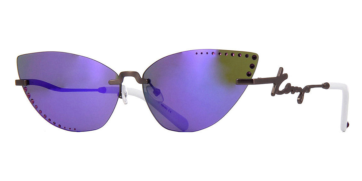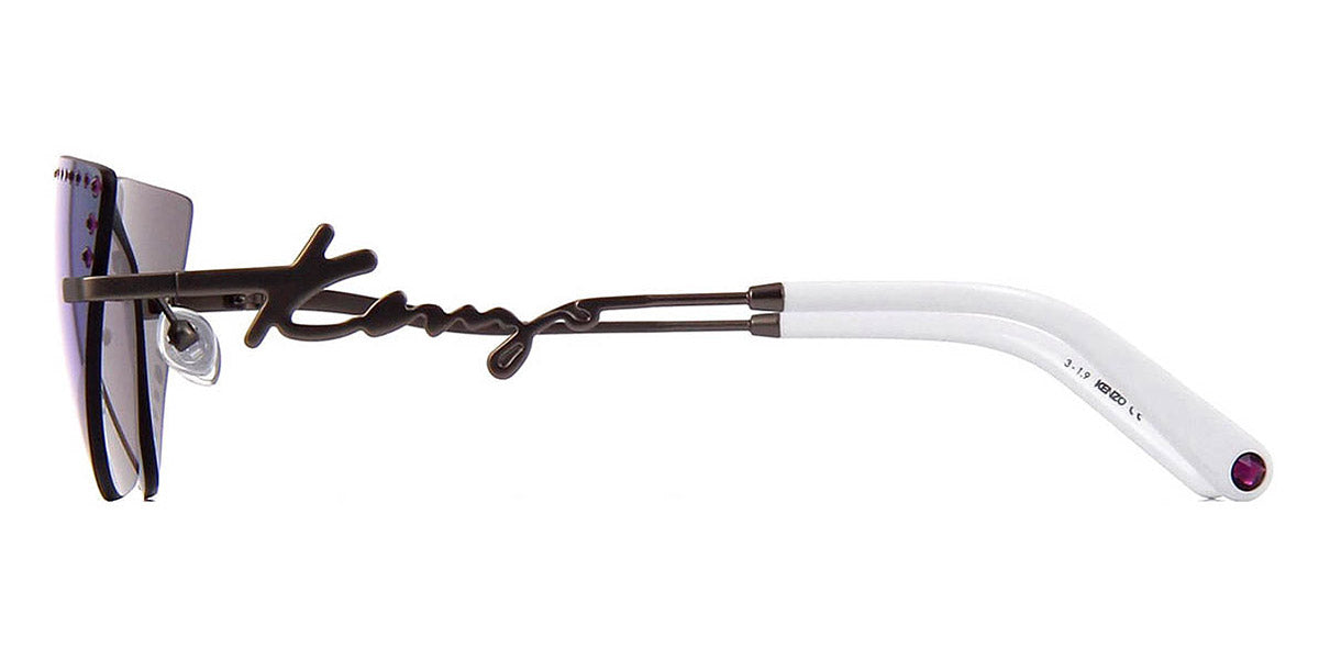 Kz40004U Sunglasses by Kenzo. Color: Satin Gunmetal and White, Size: 67-14-140. By mixing Parisian flare and iconic Japanese motifs, KENZO creates standout eyewear pieces that reflect the daring energy of the Maison’s new Artistic Director Nigo. Celebrating iconic eyewear shapes while playing with colorful Havanas inspired from the vintage archives of the brand, the designer masterfully mixes Japanese and Western influences. The frames feature a lightweight yet durable construction with sleek lines and eye-catching details: each pair of glasses within the collection boasts the iconic KENZO logo on the temple. Created for young, fashion-forward personalities who want to be bold and be seen, KENZO glasses feature distinctive and sometimes futuristic shapes offered in bright prints and colors.