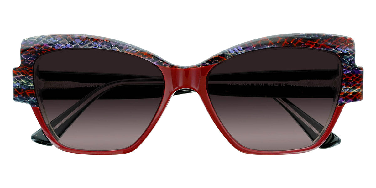 Horizon Sunglasses by Lafont. Color: Black 100,Pink 7120,Red 6101,Tortoiseshell 5156T, Size: 56-16-138. If you are a fan of the charming and elegant Parisian style, the Lafont glasses are to your liking! By experimenting with shapes, materials and colors, the designers create eye-catching styles that will add an artistic look to any outfit. The frames feature delicate silhouettes and fascinating colorations to stand out from the rest. The process of manufacturing a pair of Lafont glasses takes 8 to 14 weeks and involves 120 to 220 successive operations, depending on the complexity of the frame. Most of these processes are manual, which makes Lafont eyewear a real work-of-art.
